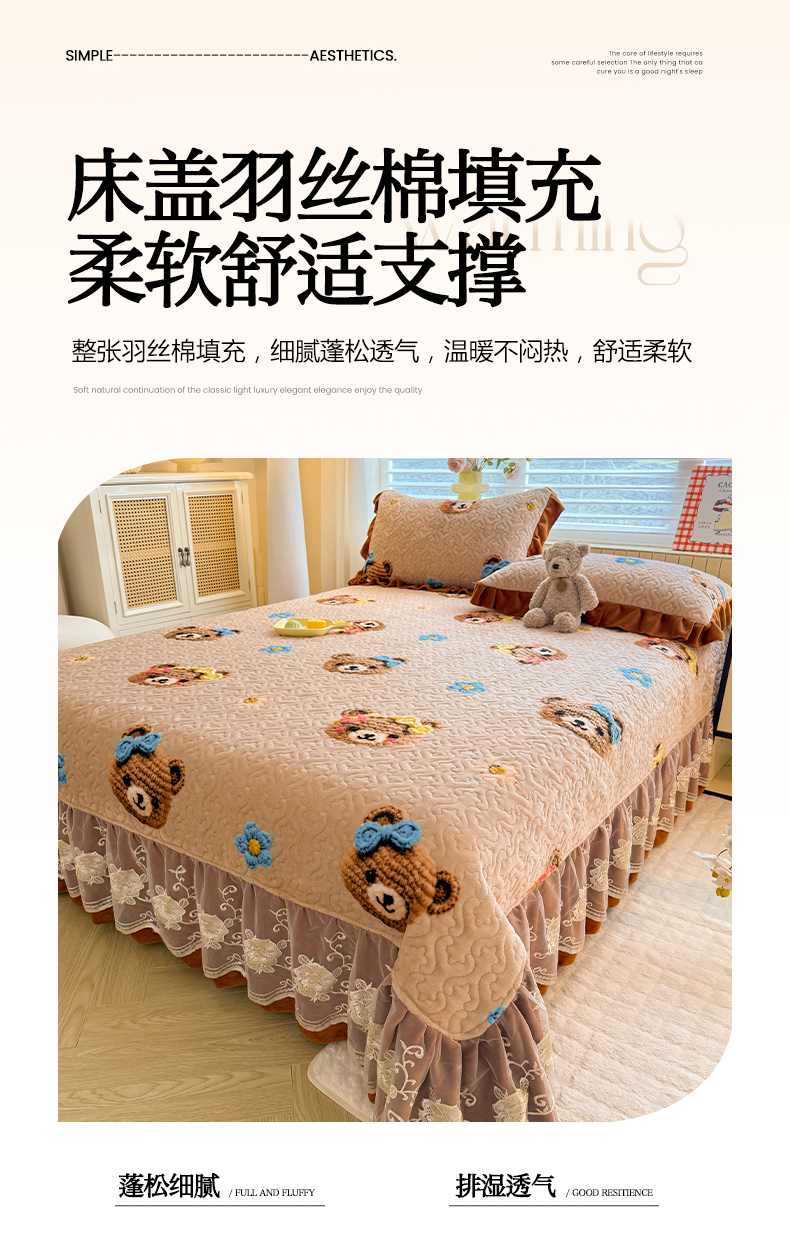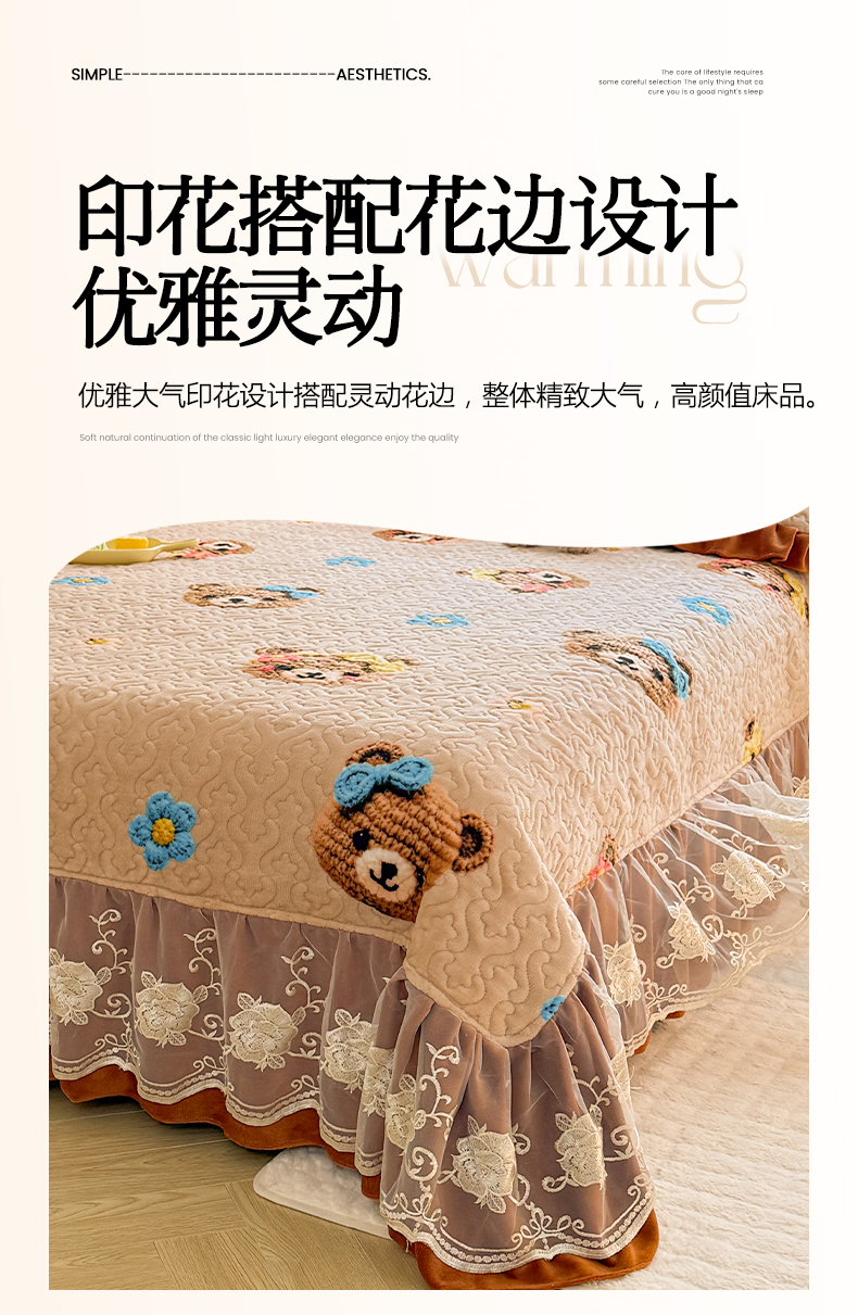 (总)美达家纺 2025新款高克重牛奶绒花边款夹棉床盖三件套,巴拉巴拉,格子萌熊,恐龙星球,梦蝶,时来运转,甜蜜奶吧,微笑熊,针织熊