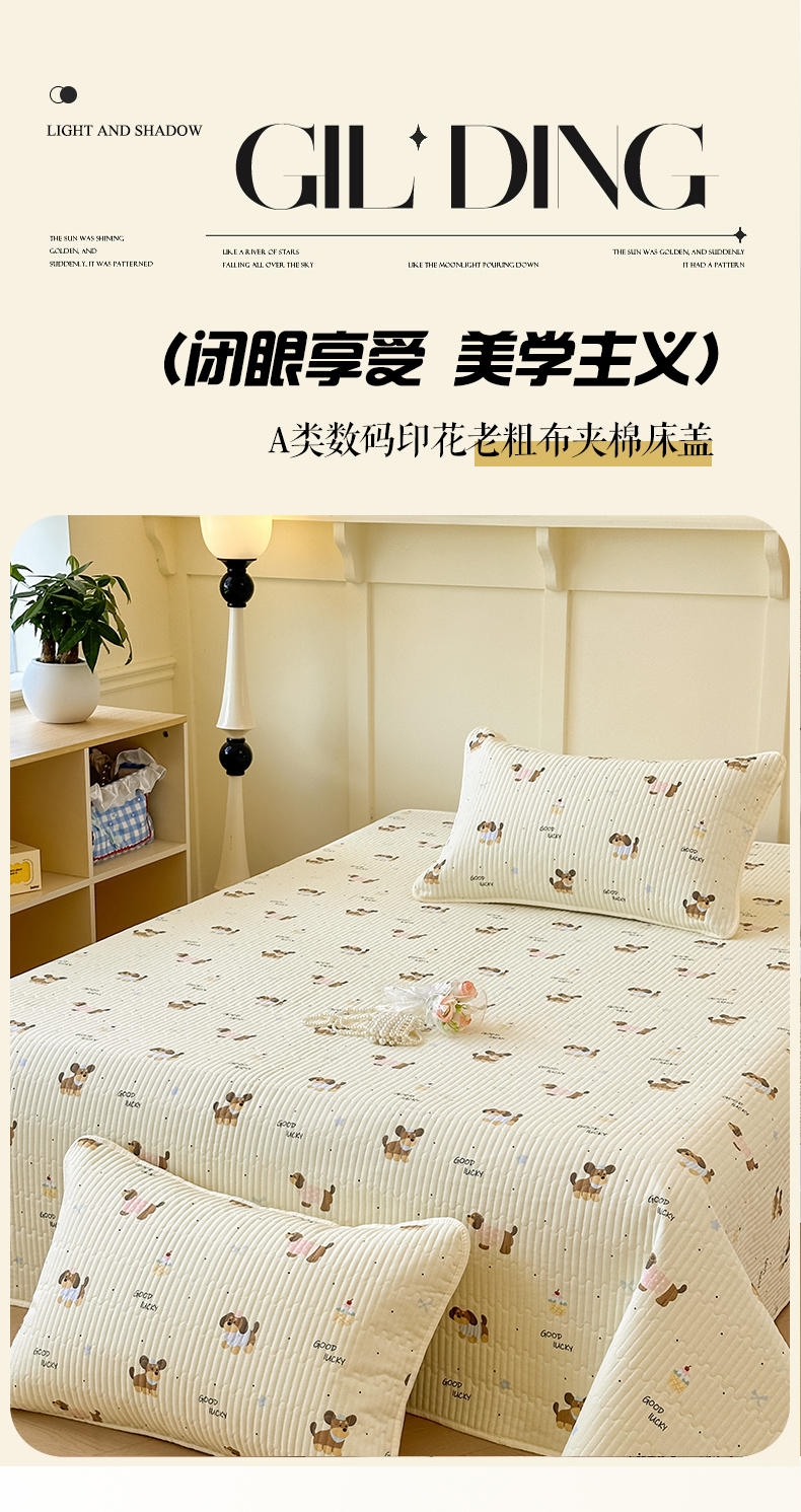 寐居家纺 2025新款A类数码印花老粗布夹棉床盖 狗狗合集