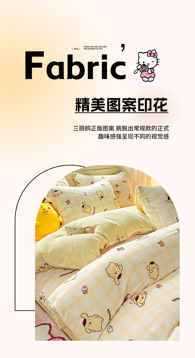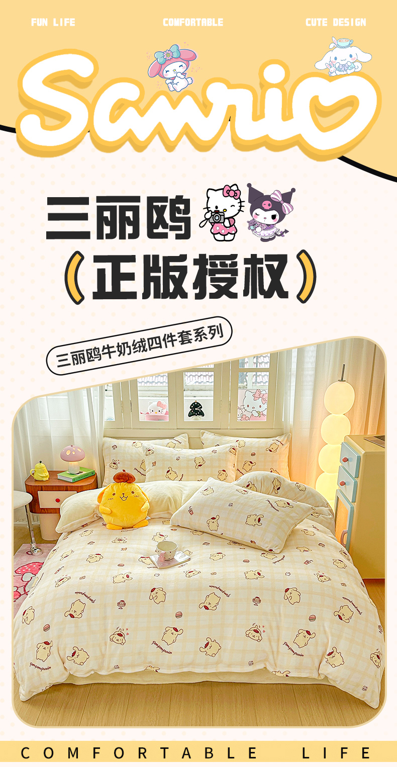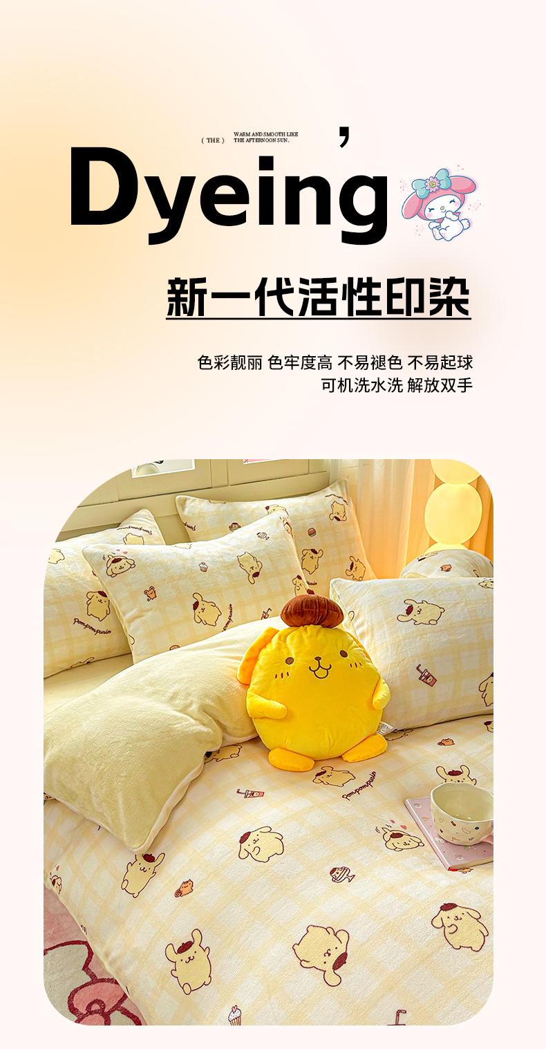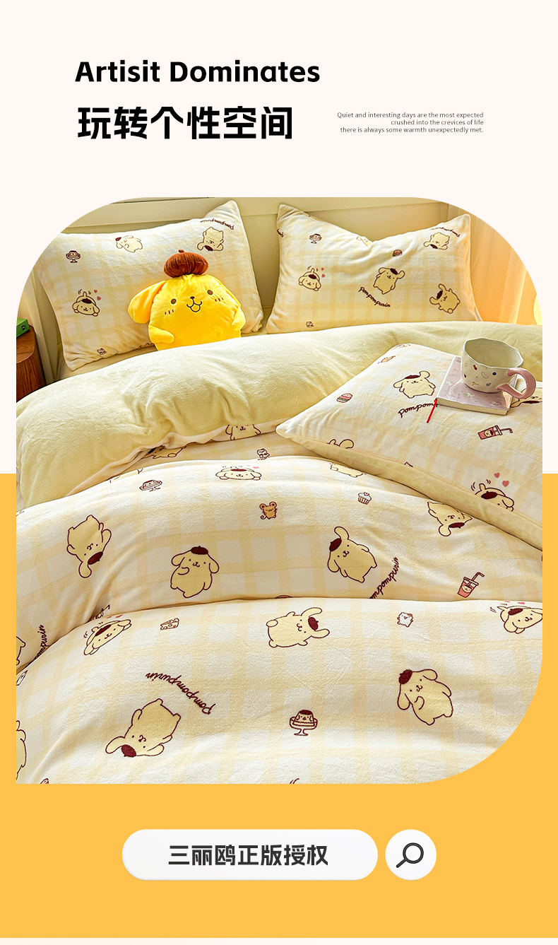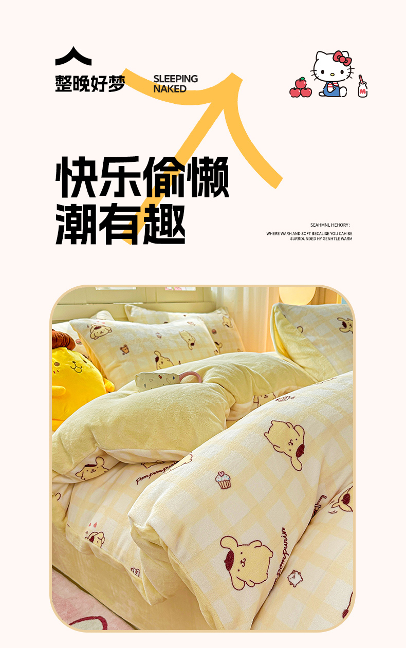 当前位置: 91家纺网 > 商品网购 > 床品套件 > 四件套 > 牛奶绒四件套 > 博雅 2025新款三丽鸥正版授权高克重牛奶绒小版四件套提供买家秀 牛奶绒小版-美食布丁狗