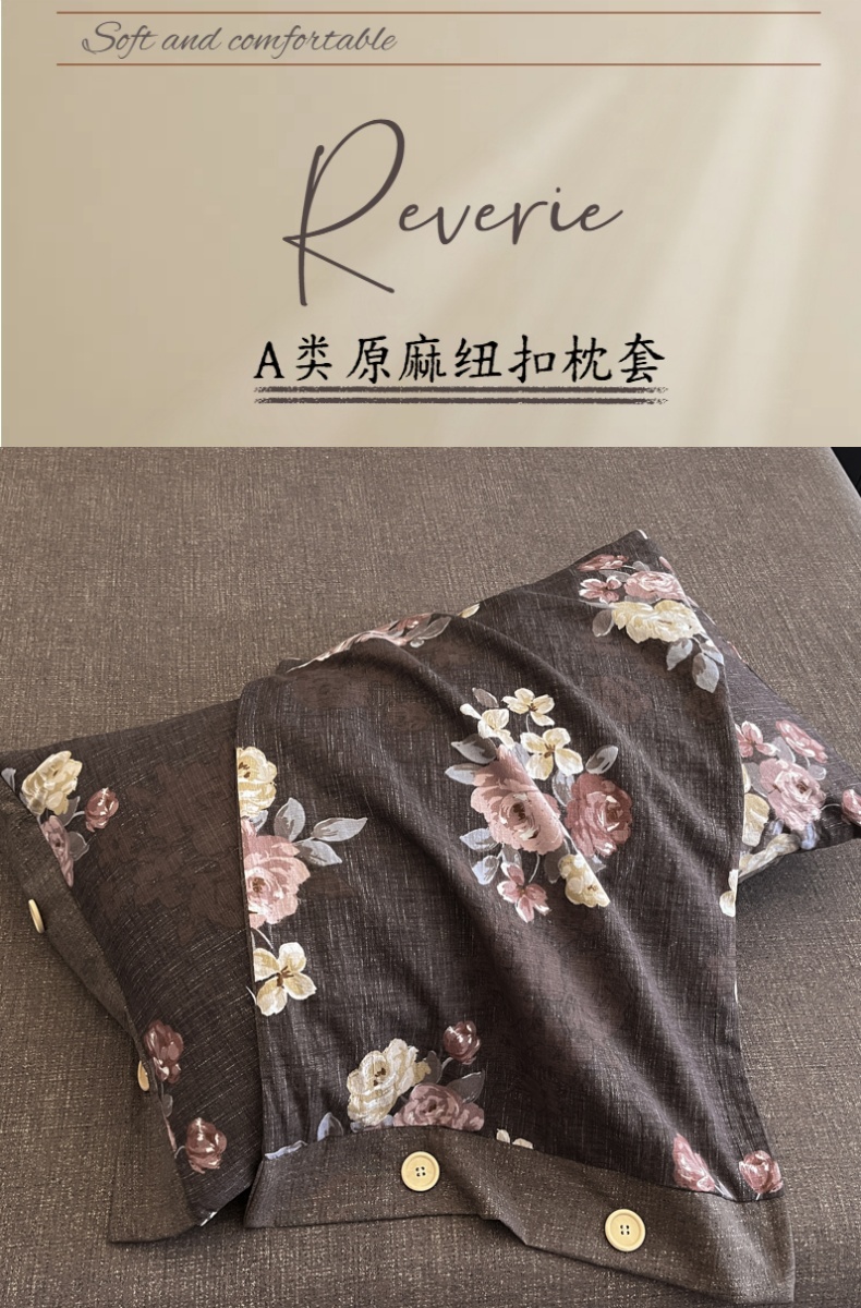 商品名称:梦舒羽 2025新款原麻纽扣枕套宿舍单只枕芯套枕头套一对装枕芯内胆套 繁花