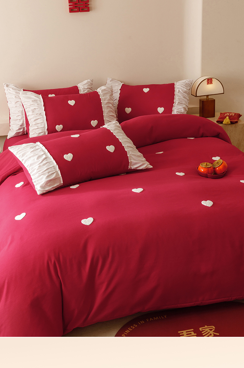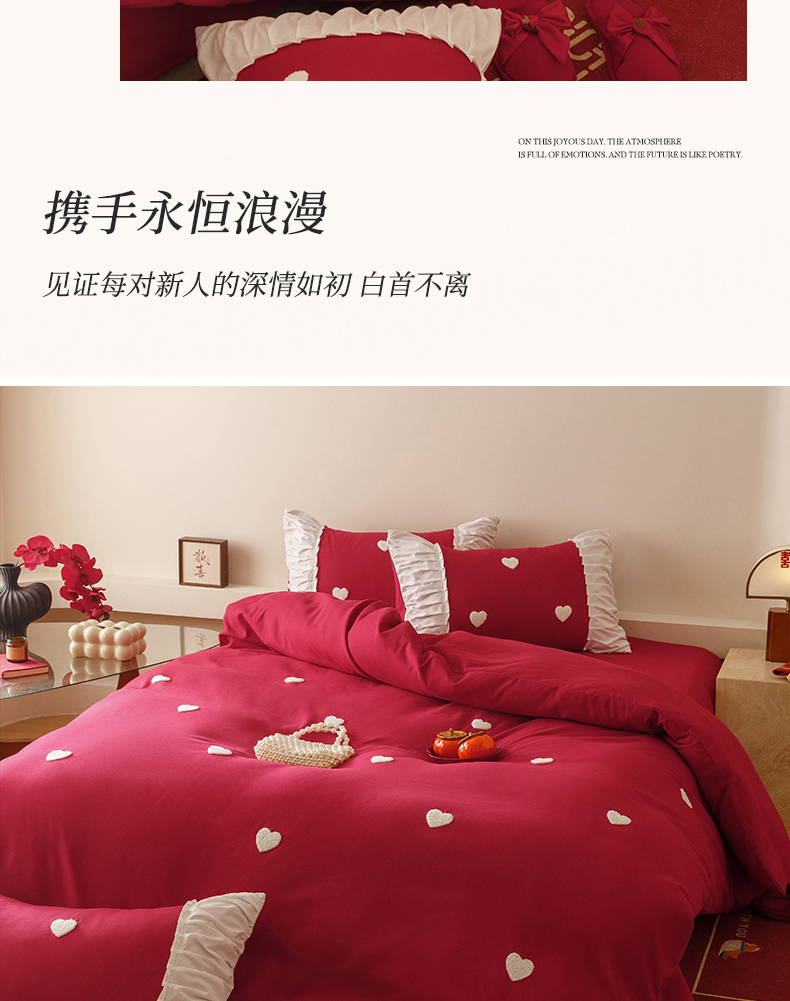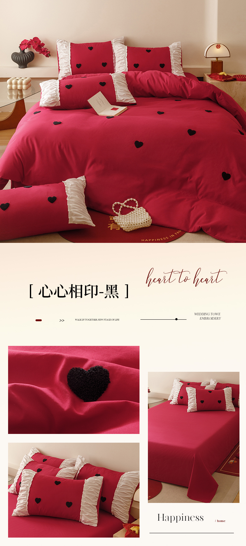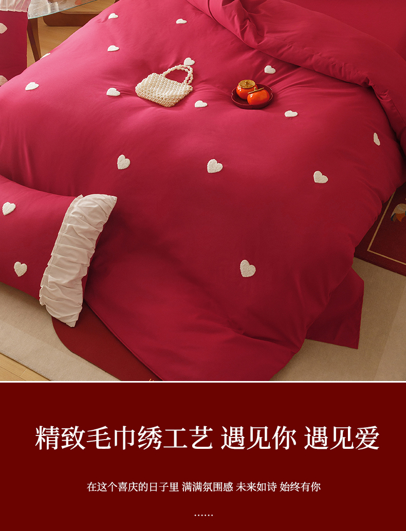 (总)苏源家居 2025新款小爱心买家秀婚庆刺绣大红结婚四件套