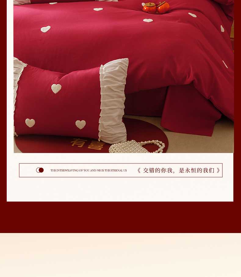 商品名称:(总)苏源家居 2025新款小爱心买家秀婚庆刺绣大红结婚四件套