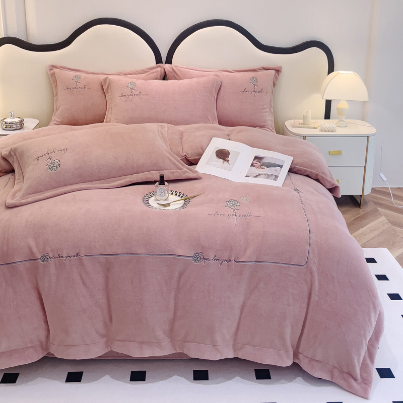 (总)梵克保罗 2024新款加厚肌理纹碳素磨毛刺绣四件套,宾利兰,典雅灰,丁香紫,豆沙粉,复古绿,浪漫粉