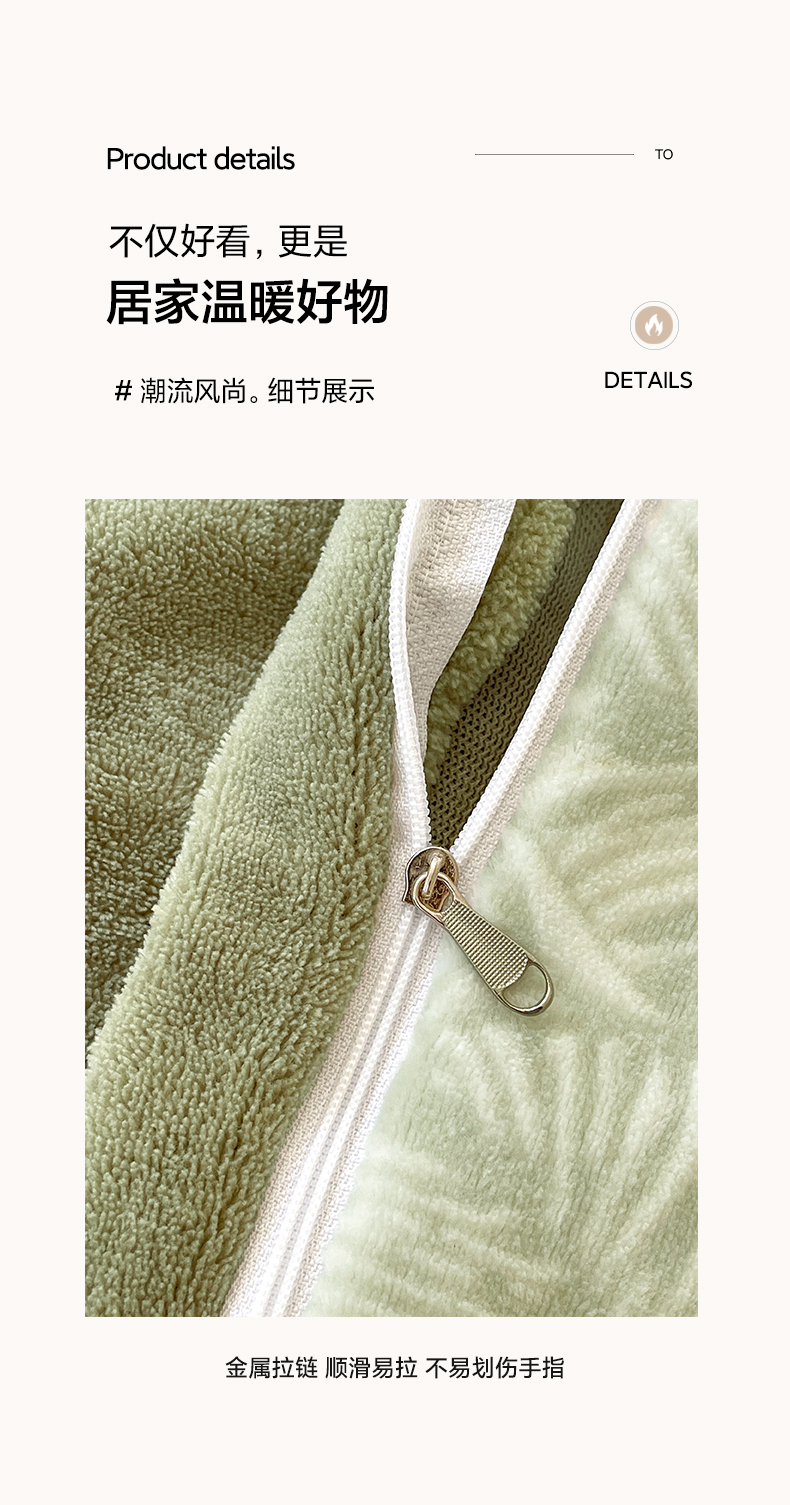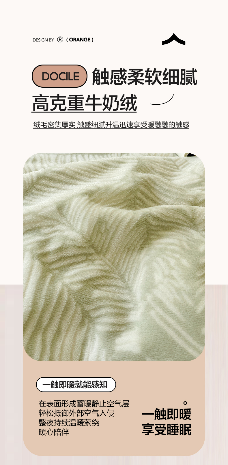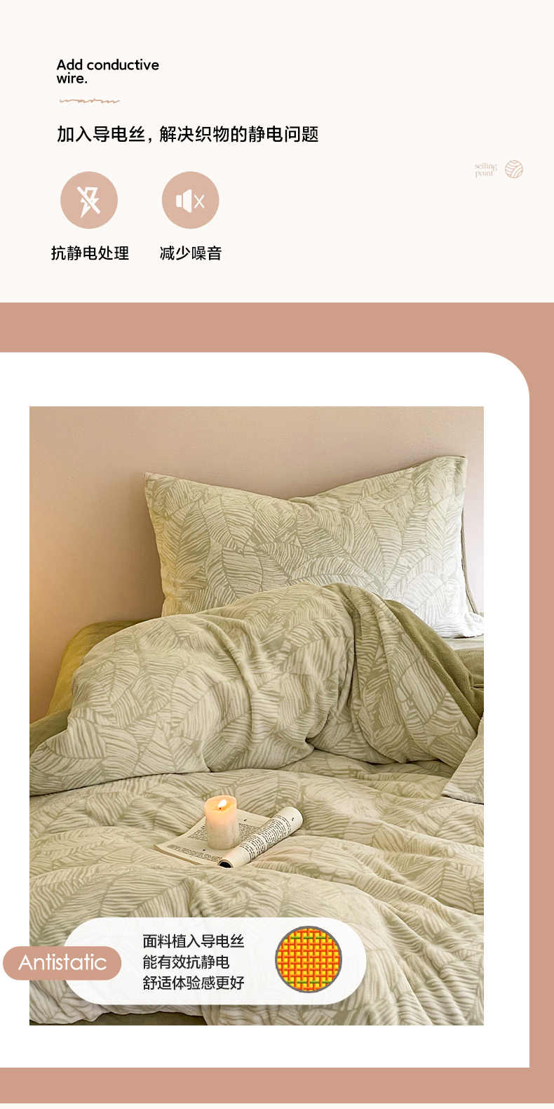 商品名称:雅居纺家纺 2025新款花卉雕花绒加厚保暖四件套 绿色树叶