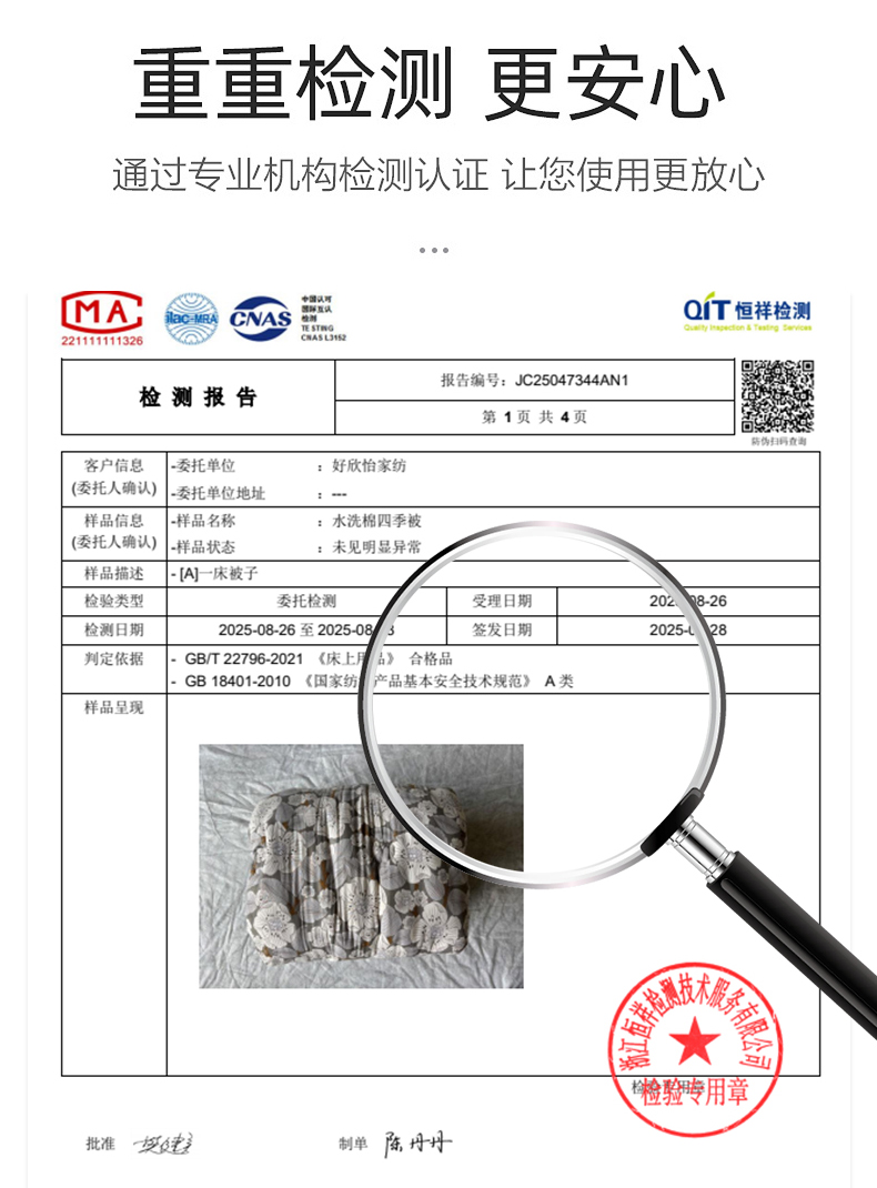当前位置: 91家纺网 > 商品网购 > 被子 > 冬被 > 好欣怡家纺 2025新款A类水洗棉冬被大豆纤维学生四季被子被芯跨境直播(提供买家秀质检报告) 花香四溢