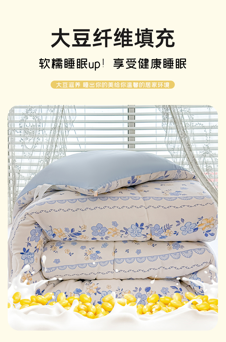 • 91家纺网 家纺一手货源 找家纺 好欣怡家纺 2025新款A类水洗棉冬被大豆纤维学生四季被子被芯跨境直播(提供买家秀质检报告) 花香四溢