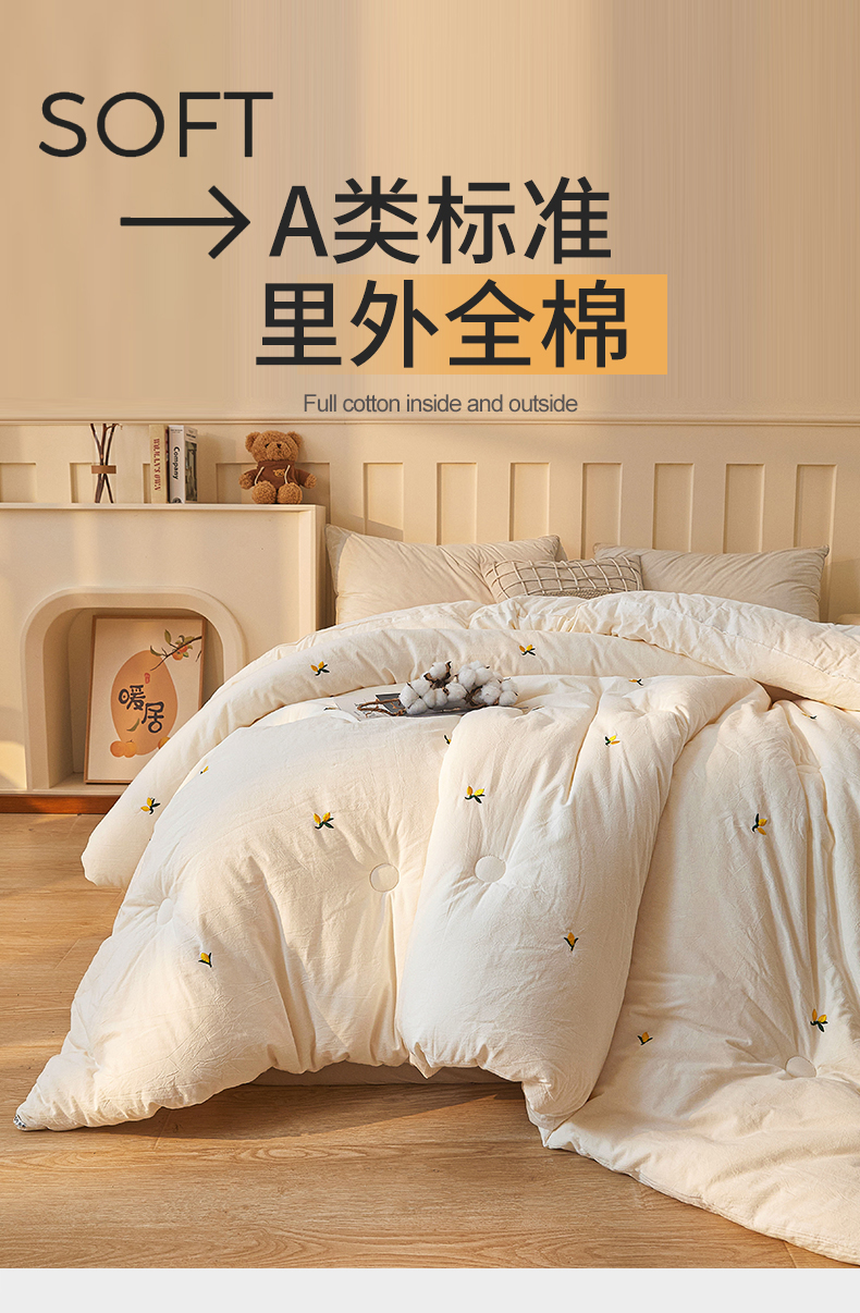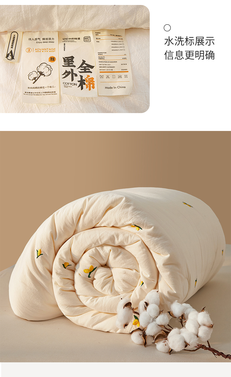 • 91家纺网 家纺一手货源 找家纺 创优家纺 2025新款专版绣花被全棉满绣刺绣被芯里外全棉新疆棉花被纯棉被芯被子春秋被冬被儿童被直播 里外全棉-黄花絮