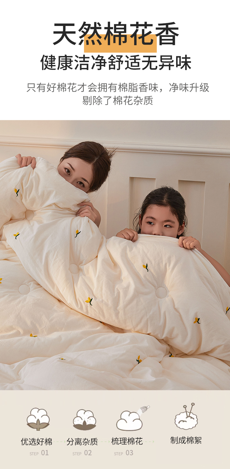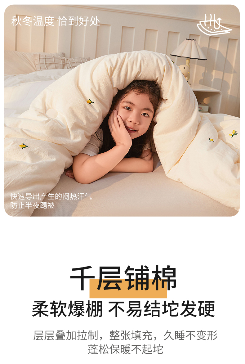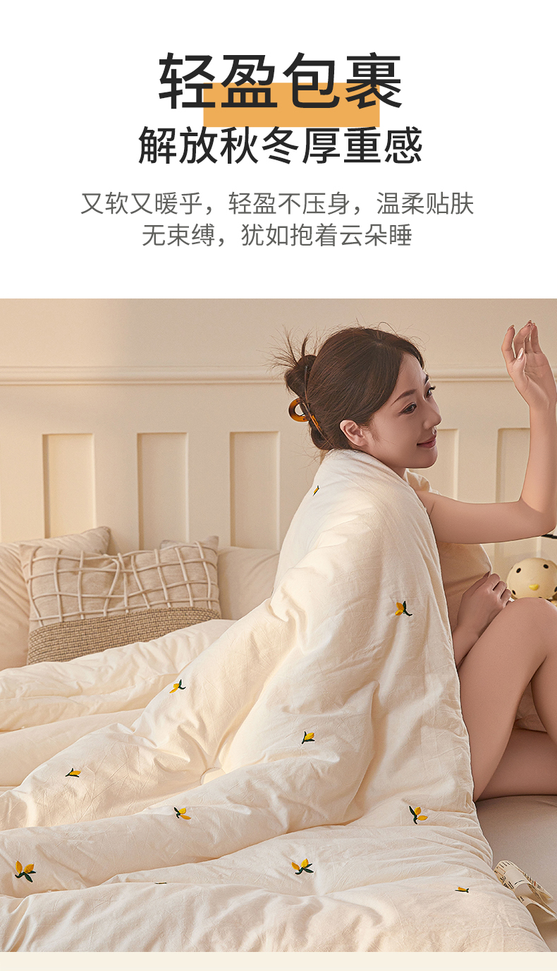 当前位置: 91家纺网 > 商品网购 > 被子 > 冬被 > 创优家纺 2025新款专版绣花被全棉满绣刺绣被芯里外全棉新疆棉花被纯棉被芯被子春秋被冬被儿童被直播 里外全棉-黄花絮
