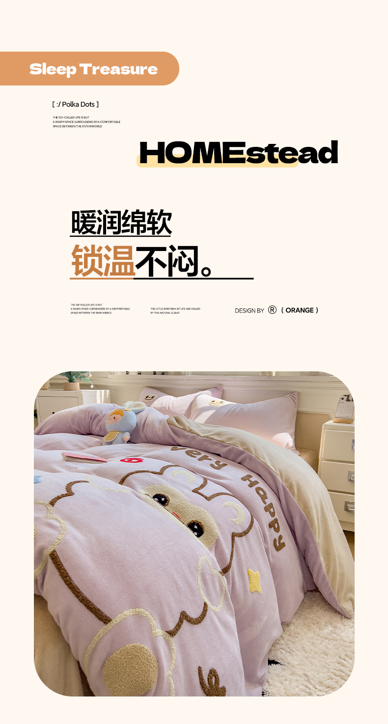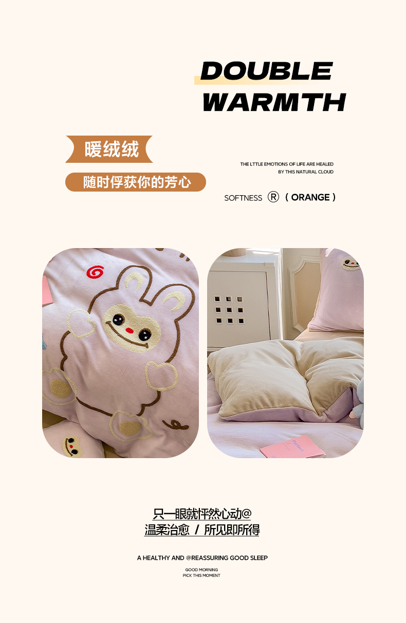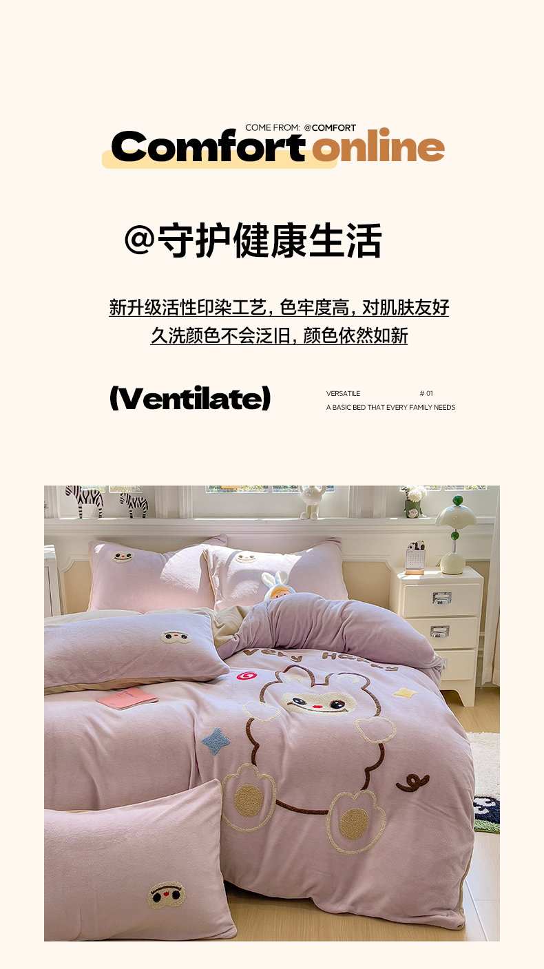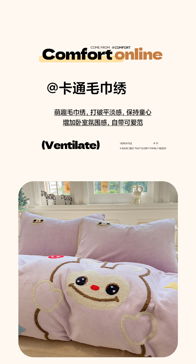 当前位置: 91家纺网 > 商品网购 > 床品套件 > 四件套 > 牛奶绒四件套 > 悦织语 2025新款加厚200克高克重毛巾绣牛奶绒四件套 可爱布布-紫