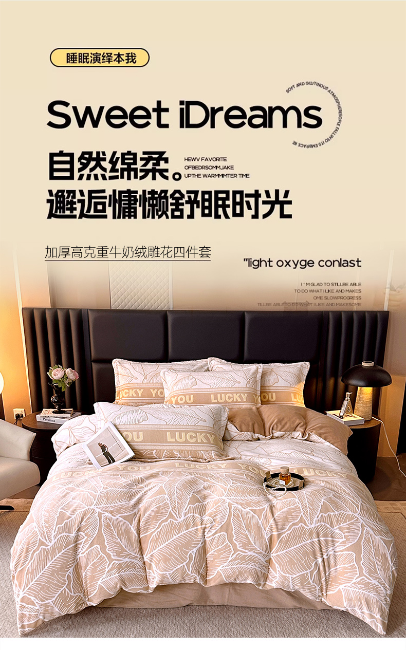 当前位置: 91家纺网 > 商品网购 > 床品套件 > 四件套 > 牛奶绒四件套 > 家贝爱 2025新款230克烂花雕花牛奶绒四件套 芭蕉叶