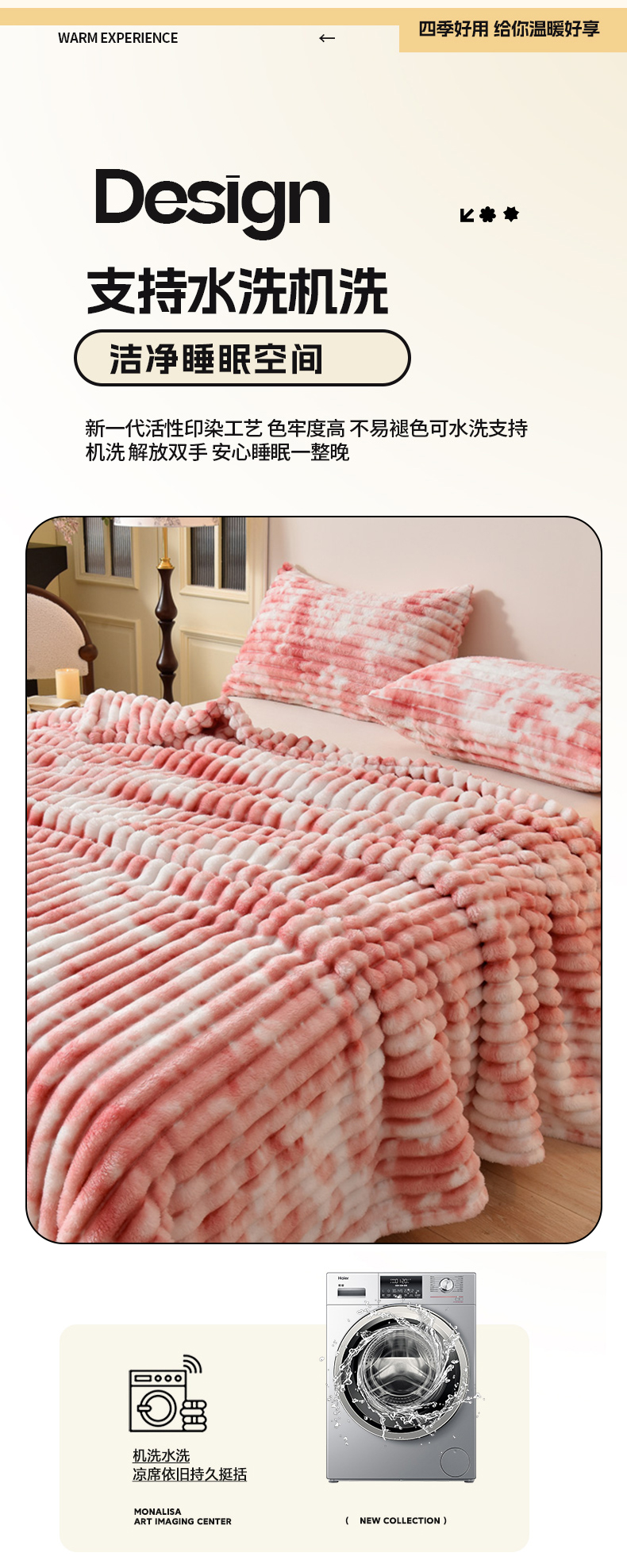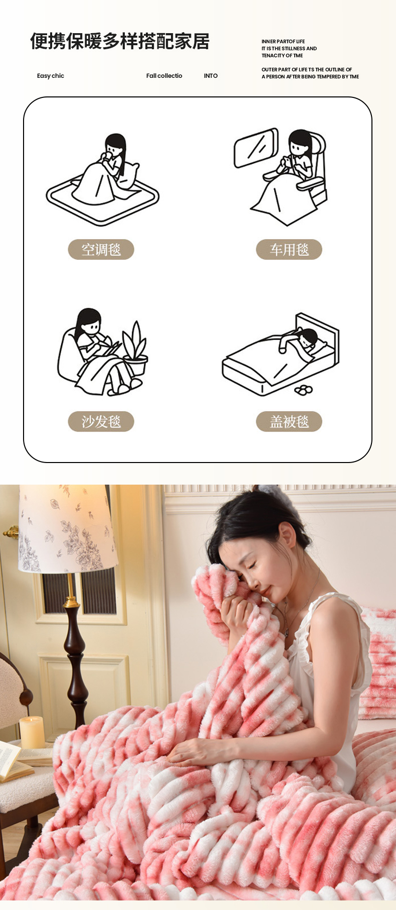 圣楚家纺 2025秋冬新款保暖亲肤舒适牛奶绒抽条毛毯毯子 灰色
