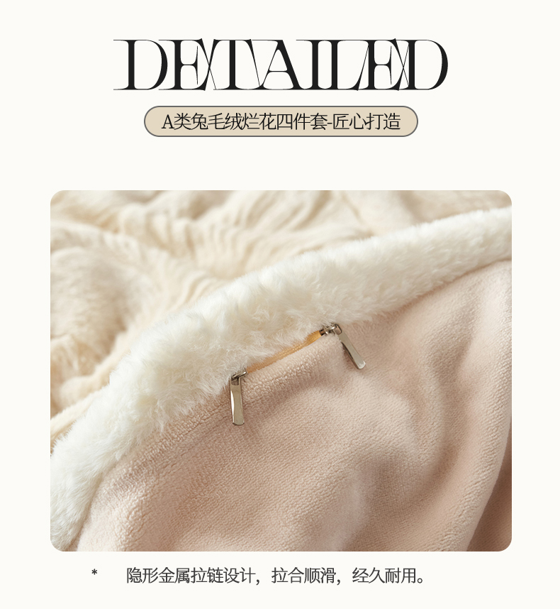 商品名称:金鹰 2025新款A类兔毛绒烂花四件套加厚牛奶绒四件套 蔓生
