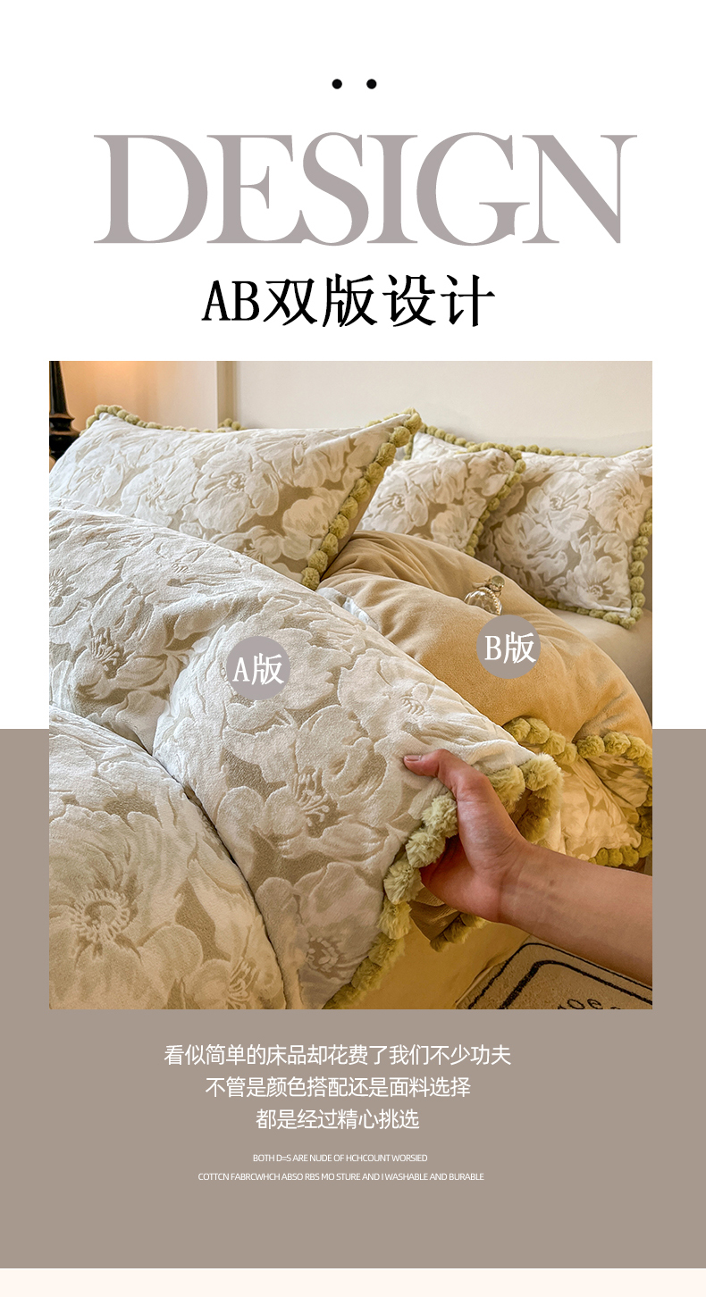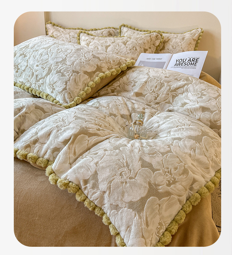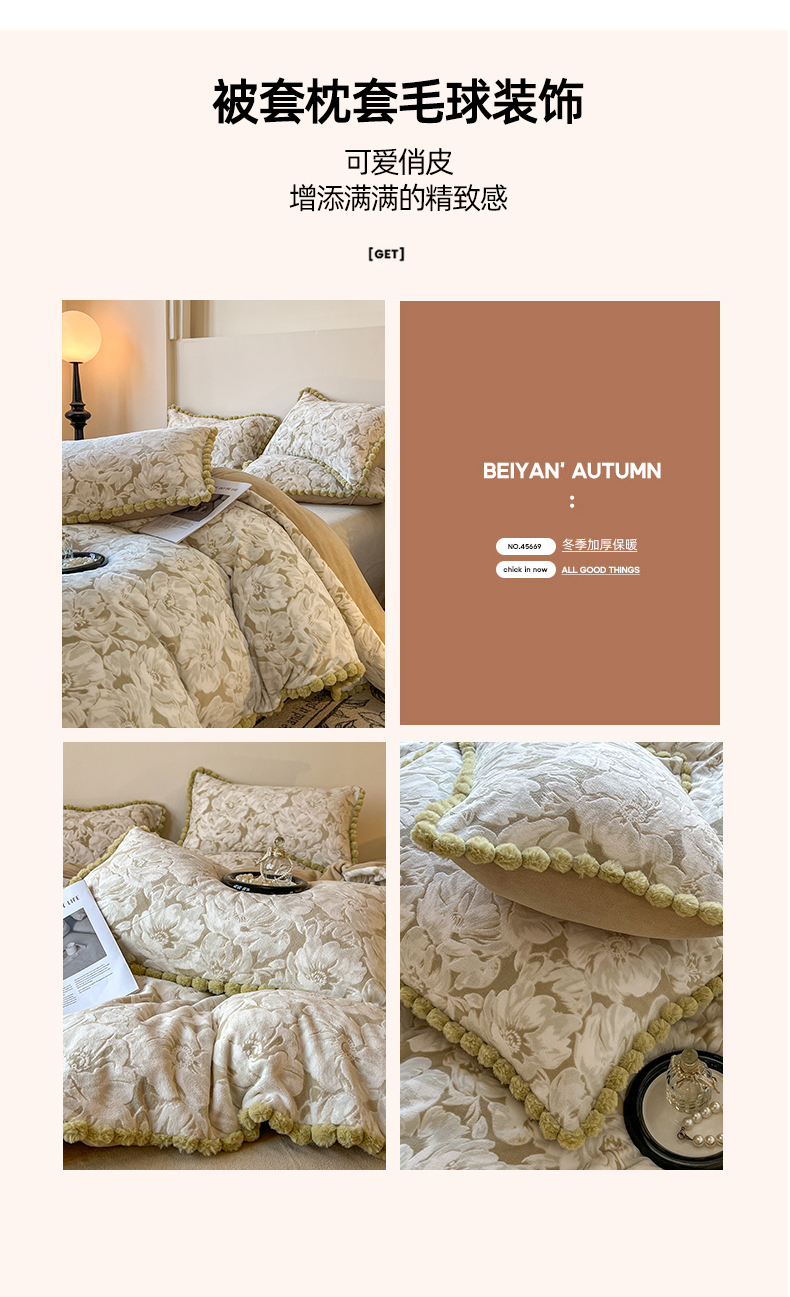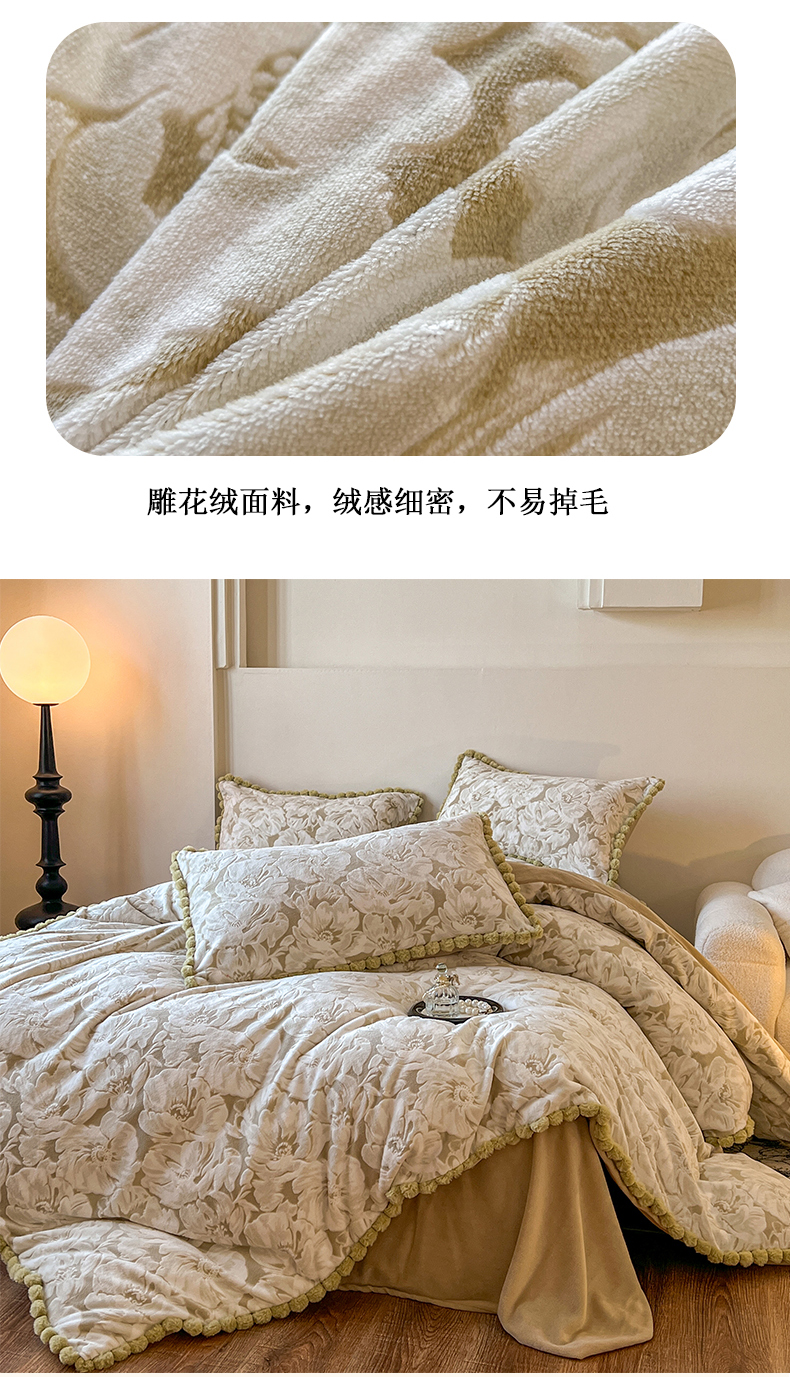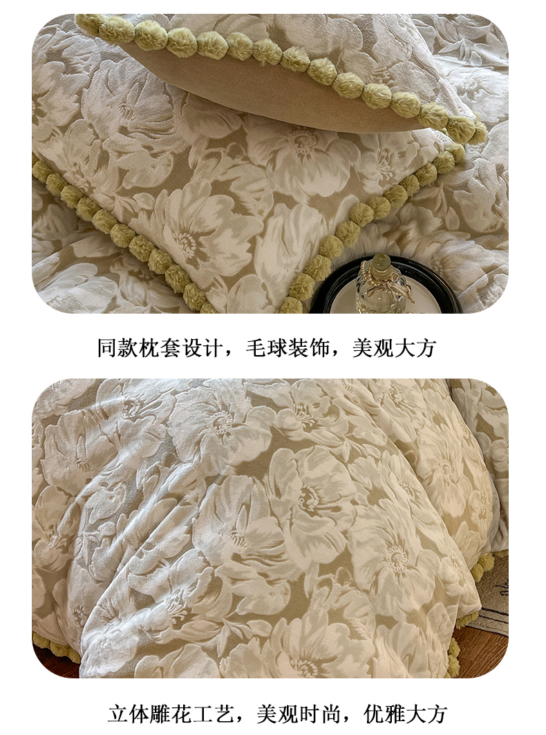 商品名称:春光里 2025新款立体雕花绒球球四件套 晨曦