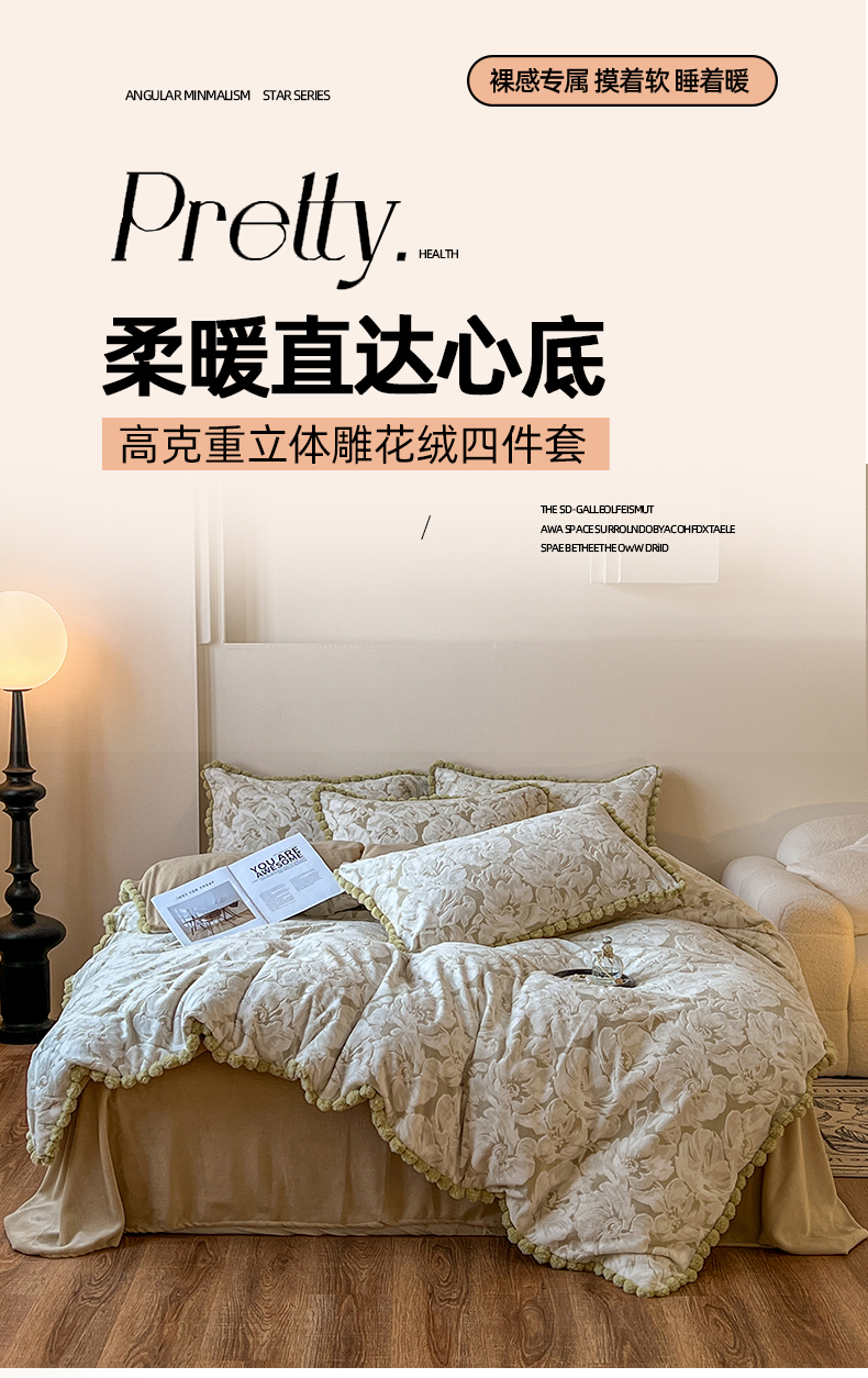 春光里 2025新款立体雕花绒球球四件套 晨曦