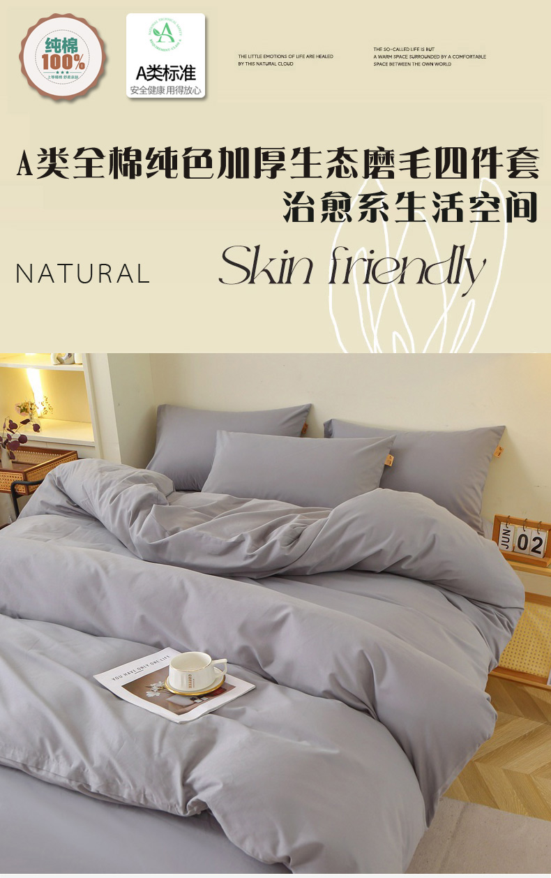 当前位置: 91家纺网 > 商品网购 > 床品套件 > 四件套 > 磨毛活性四件套 > 晶缦 2025新款100%纯棉13376纯色喷气全棉磨毛多规格四件套 暖芸馨-浅青灰