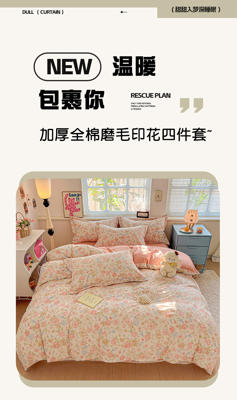 当前位置: 91家纺网 > 商品网购 > 床品套件 > 四件套 > 全棉普通四件套 > 优选直播新款全棉磨毛喷气印花四件套加厚纯棉三件套(一字绣工艺款)学生三件套 幽梦玉