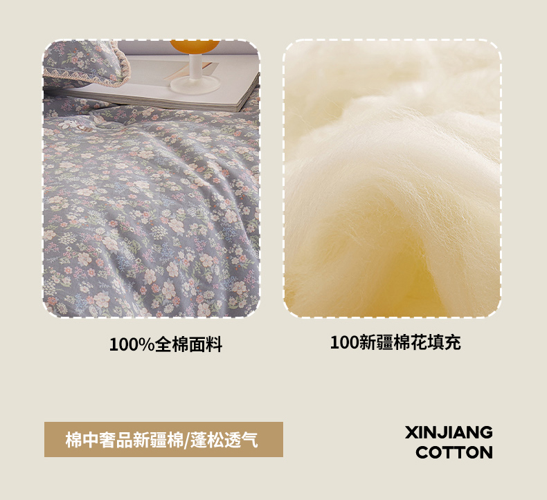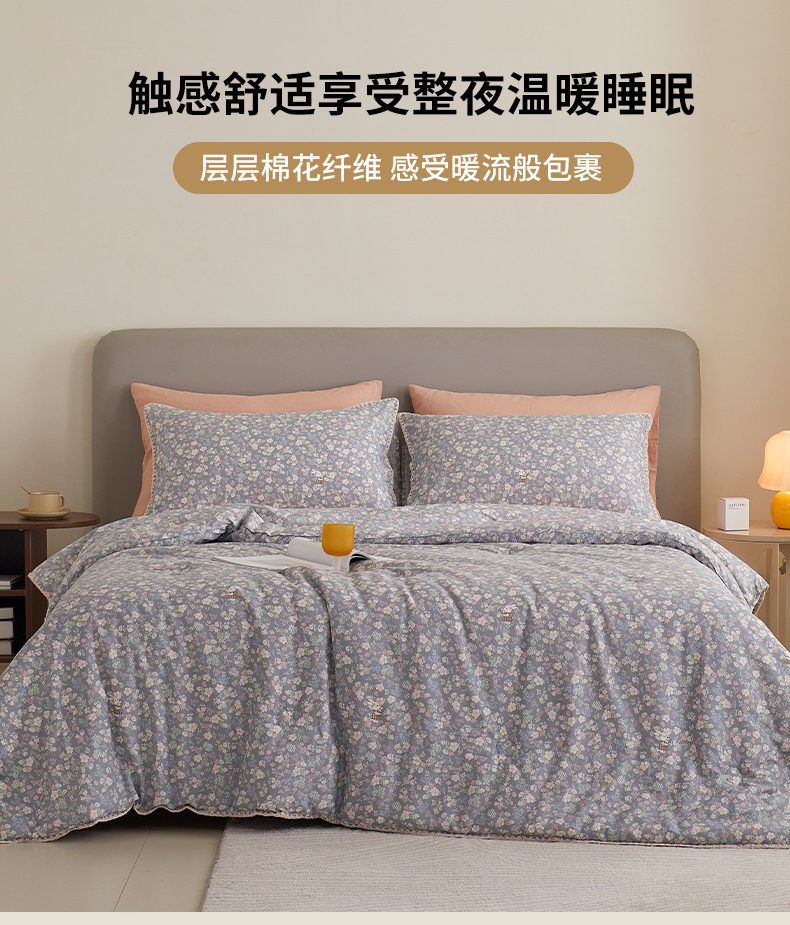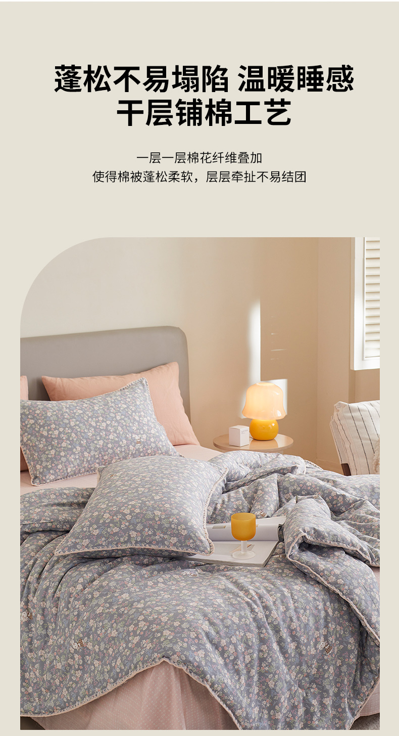 商品名称:暖阳 2025新款全棉A类里外贝壳三角针包边冬被被子被芯 银杉之梦