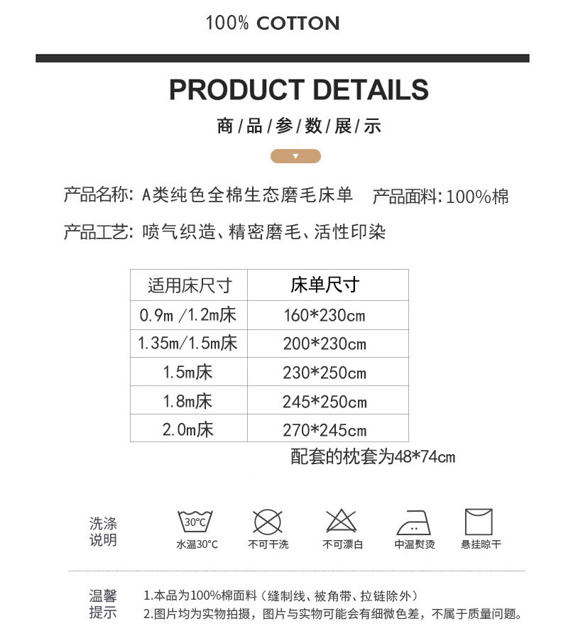 当前位置: 91家纺网 > 商品网购 > 跨境商品 > 床上用品(Bedding) > 床单床罩(Bedspreads Coverlets & Set > 晶缦家纺 2025新款100%纯棉13376纯色喷气全棉磨毛四件套和单品被套床单床笠枕套-单床单 暖芸馨-深松棕
