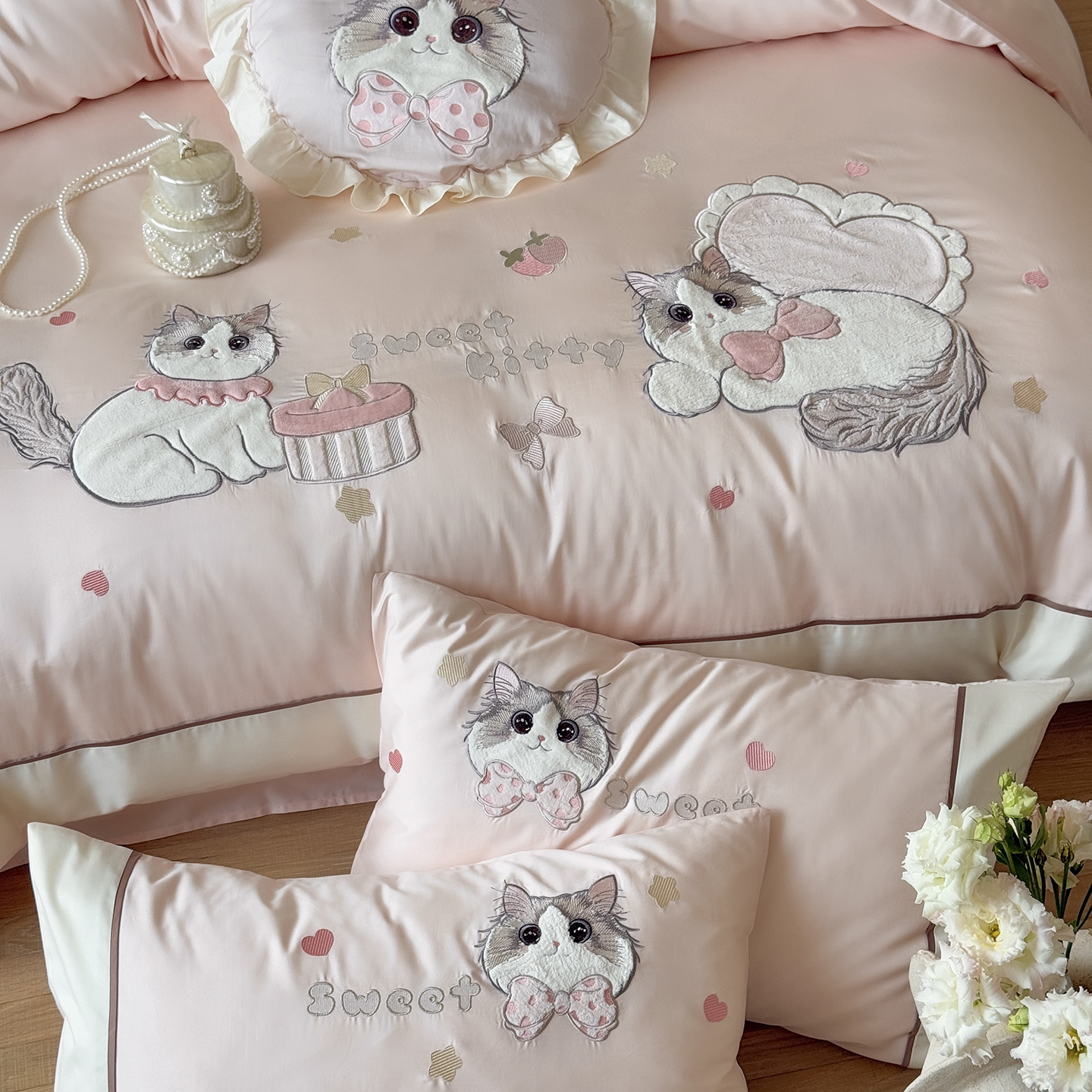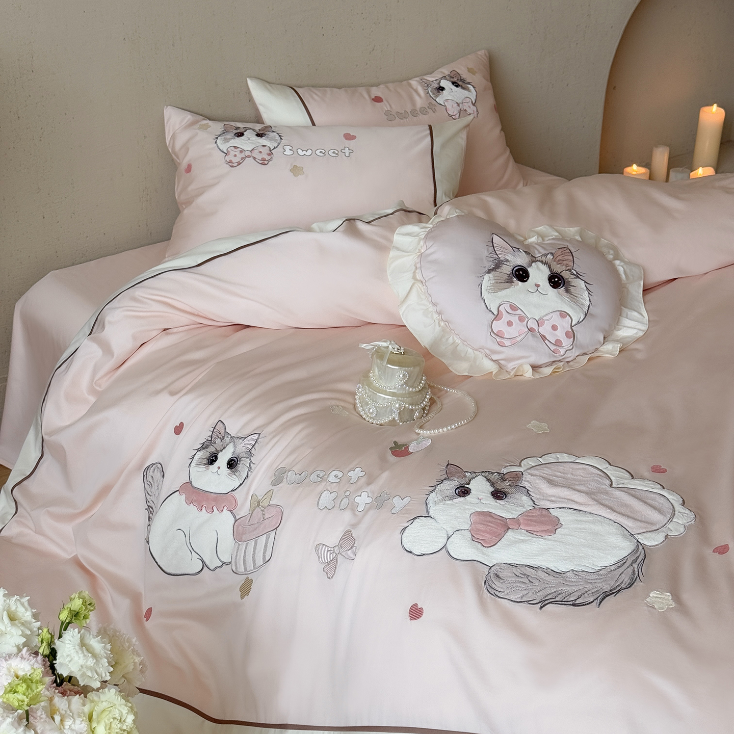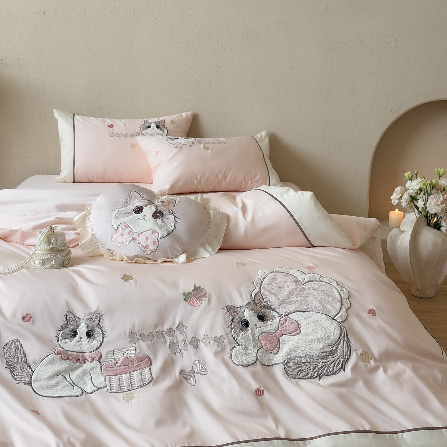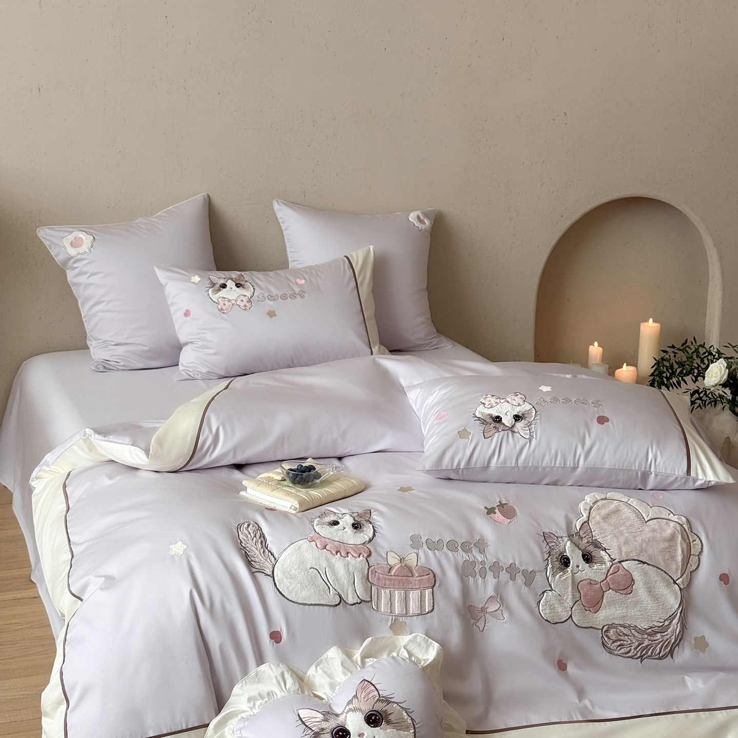 (总)佳汐蓝家纺 2025新款百支全棉长绒棉贡缎四件套-布偶猫