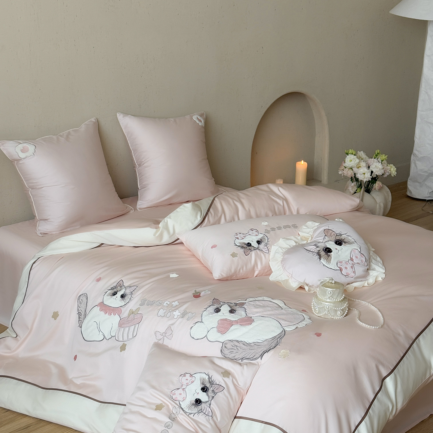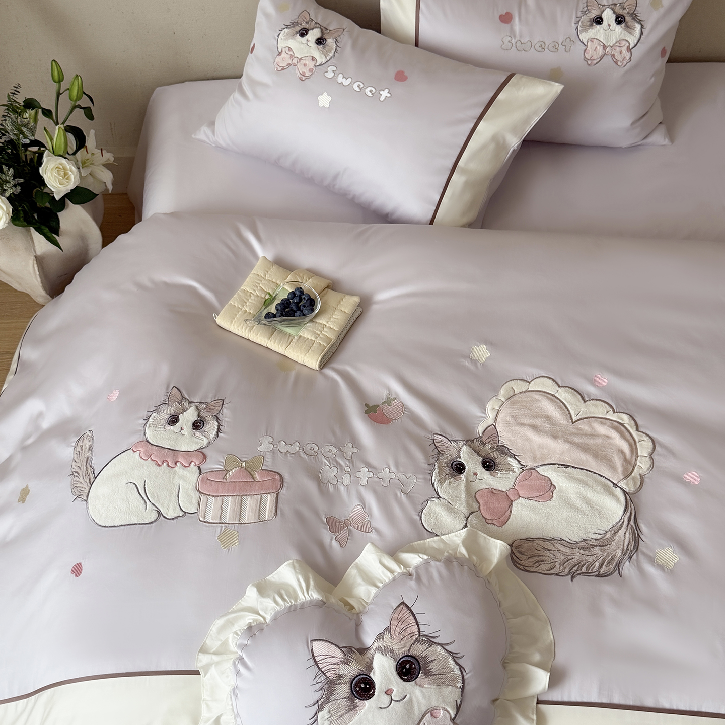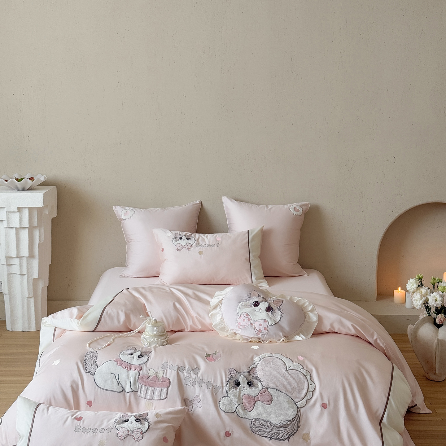 (总)佳汐蓝家纺 2025新款百支全棉长绒棉贡缎四件套-布偶猫