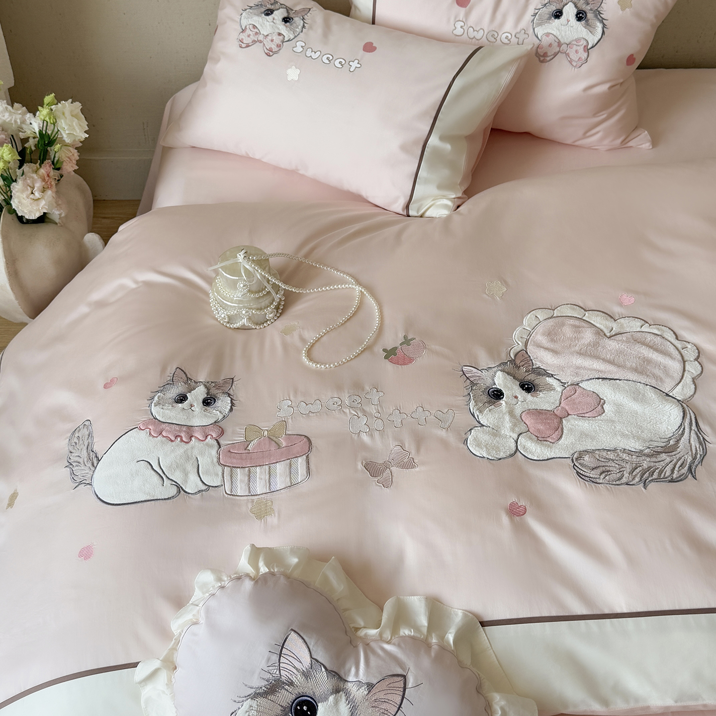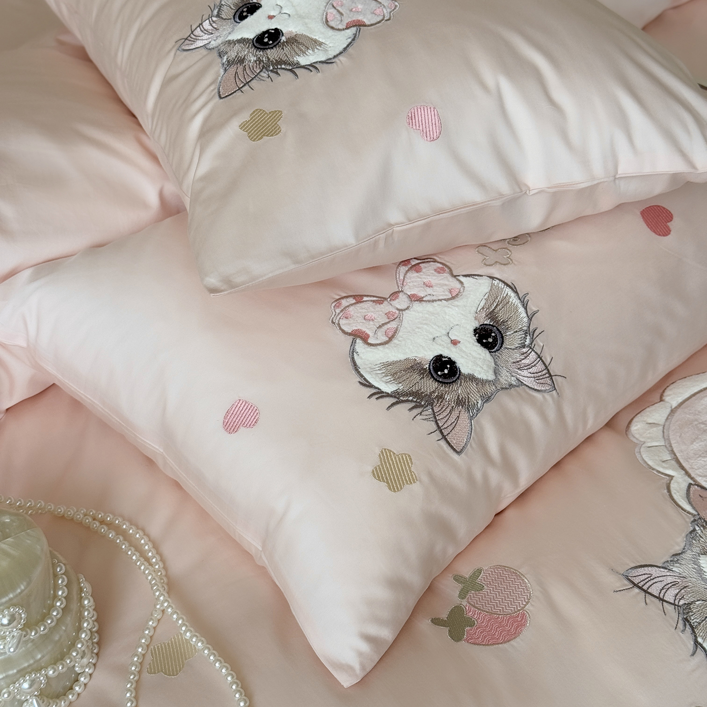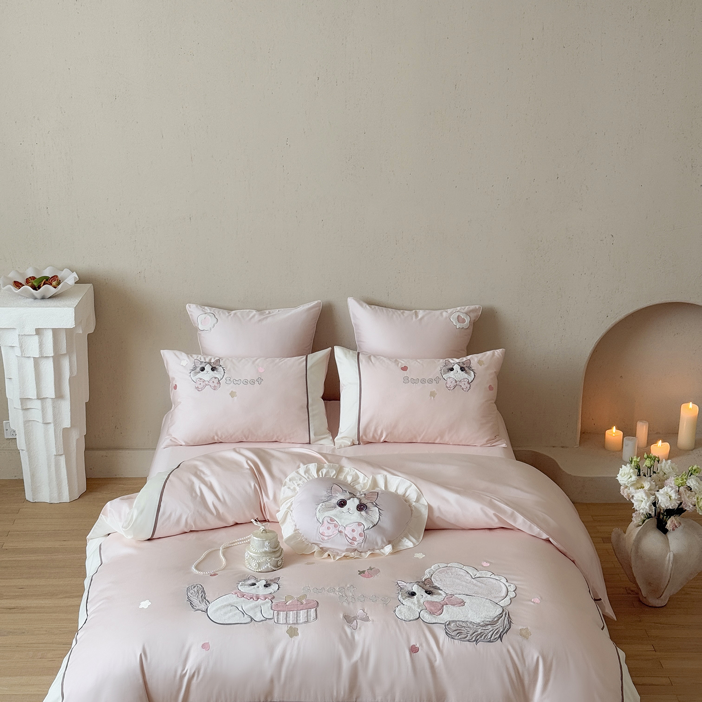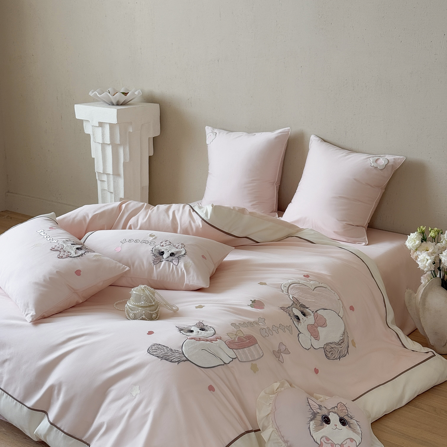 (总)佳汐蓝家纺 2025新款百支全棉长绒棉贡缎四件套-布偶猫