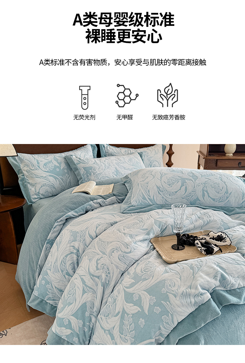 (总)慕晨 2025新款立体提花绒简约风格高克重雕花加厚牛奶绒四件套,波西米亚-米白,花季恋歌-粉,花约-驼,玫瑰之约-粉,玫瑰之约-米白,轻奢旗格-米白,轻奢旗格-浅灰,水杉叶-绿,水杉叶-米白