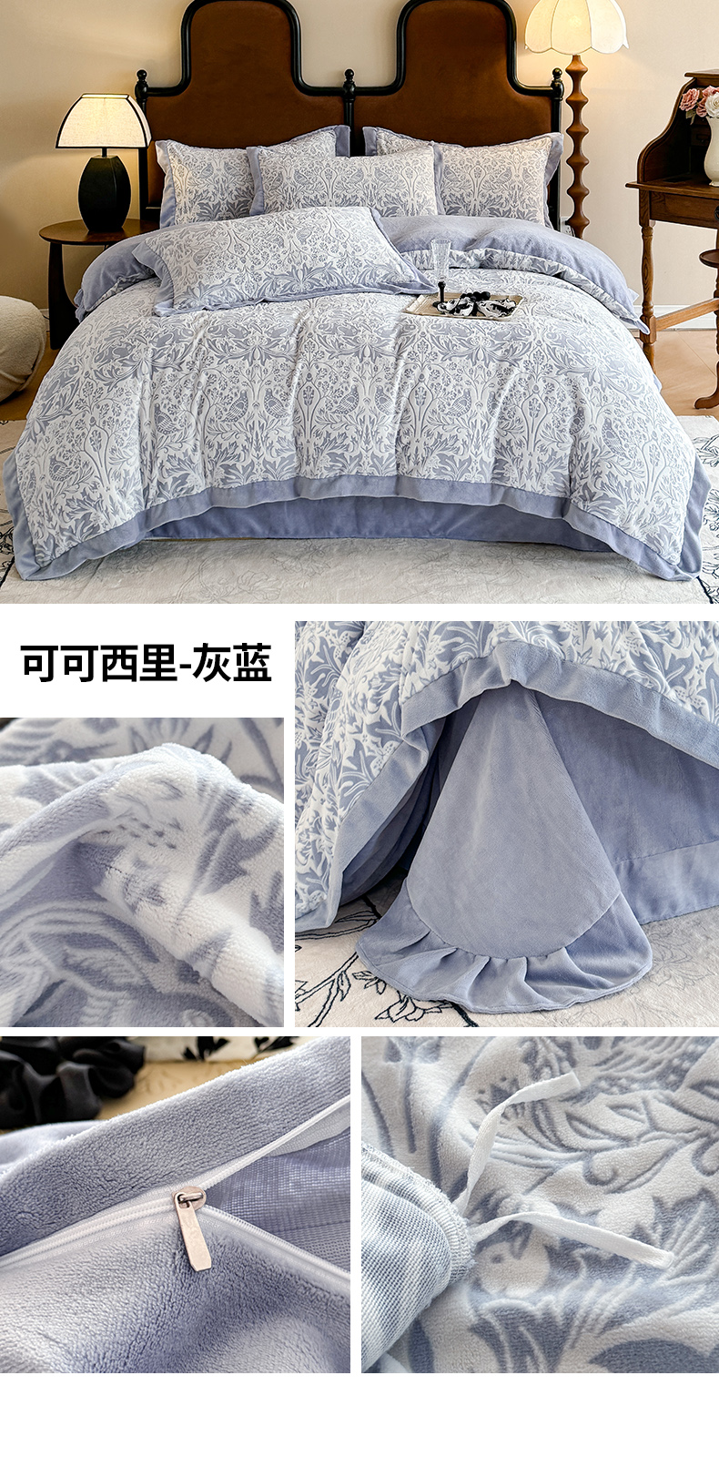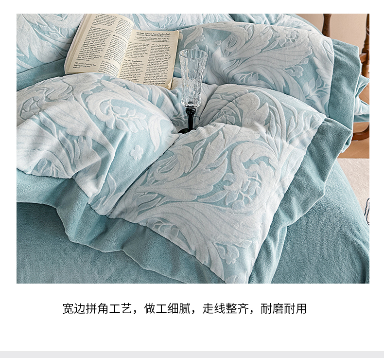 (总)慕晨 2025新款高克重雕花牛奶绒法式风大宽边拼角吊边床单四件套,可可西里-珊瑚粉,图岚朵-珊瑚粉,可可西里-灰蓝,图岚朵-松石绿,图岚朵-柔雾蓝