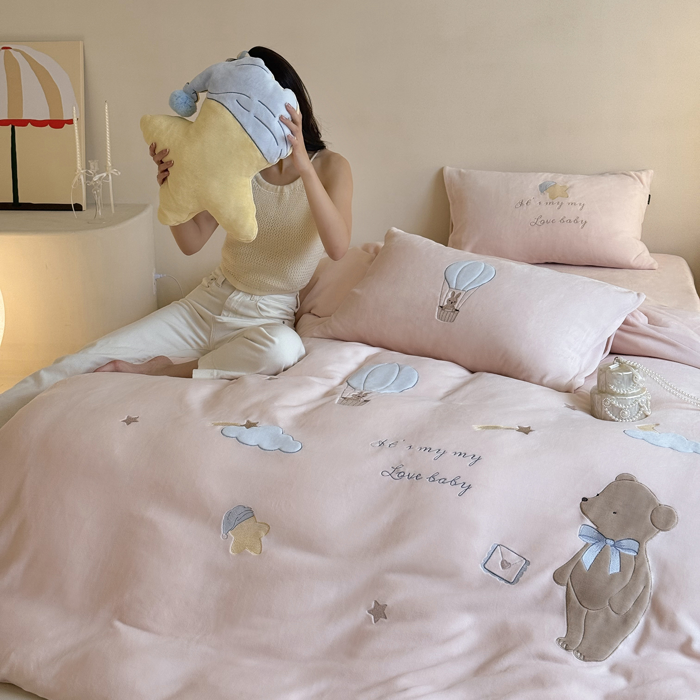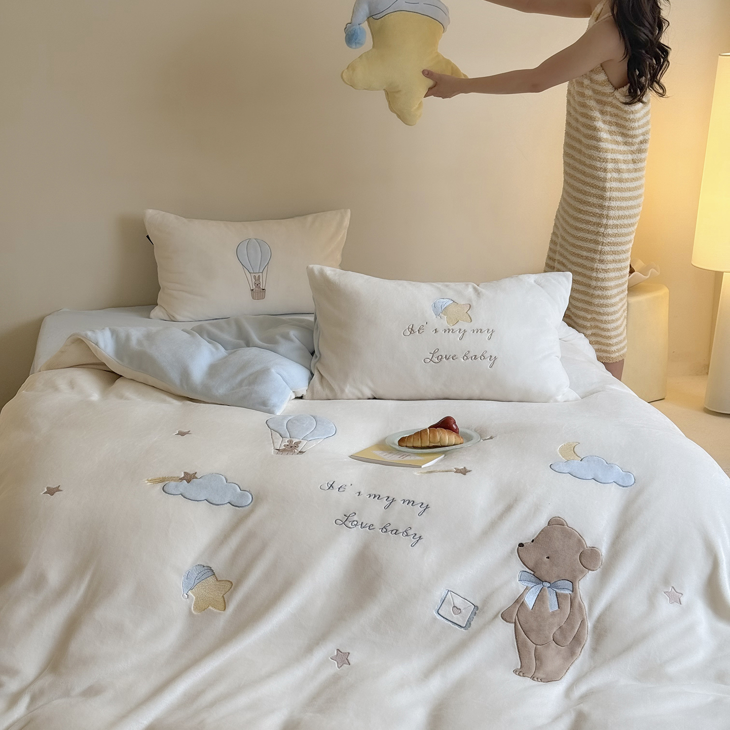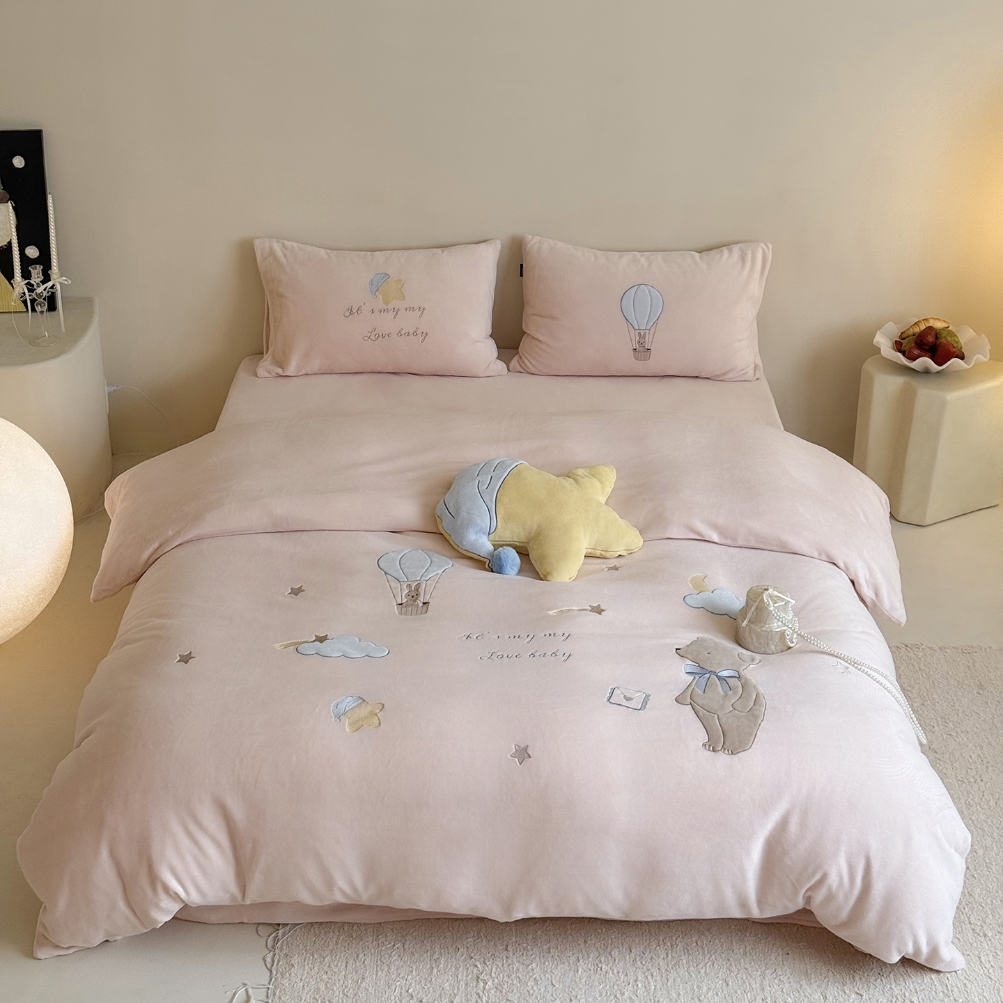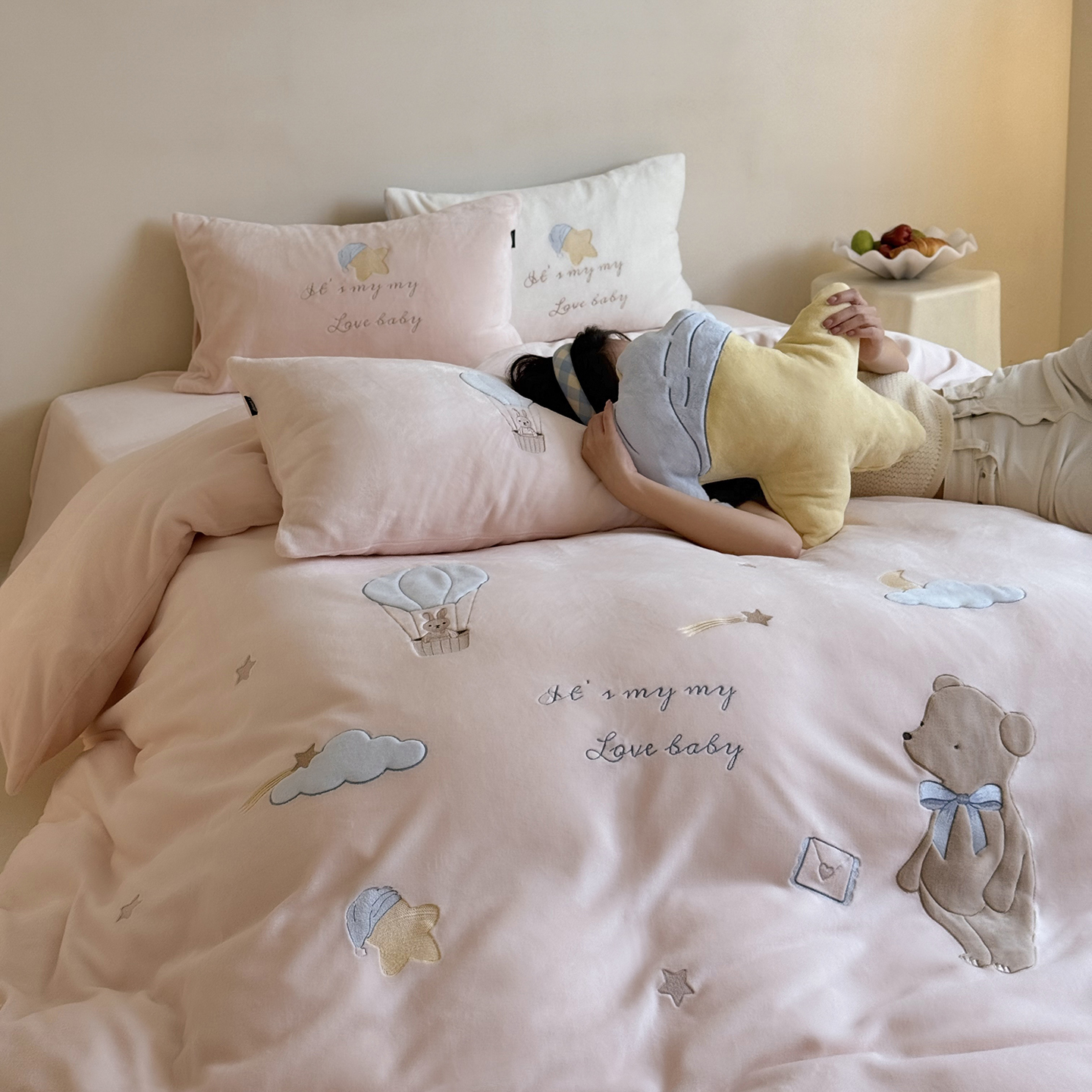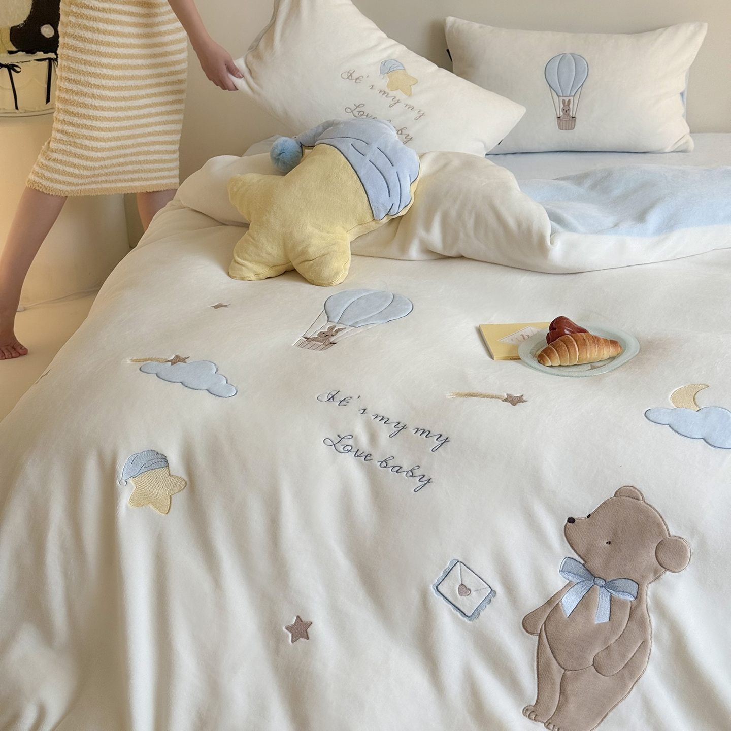 当前位置: 91家纺网 > 商品网购 > 床品套件 > 四件套 > 牛奶绒四件套 > (总)鹿班家居 2025新款冬季高克重牛奶绒贴布绣系列四件套-小熊心事(标准会员-10元)