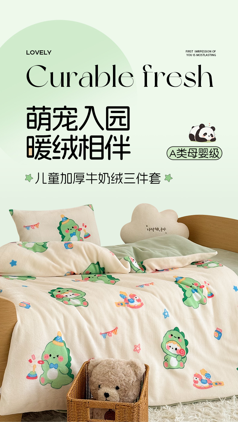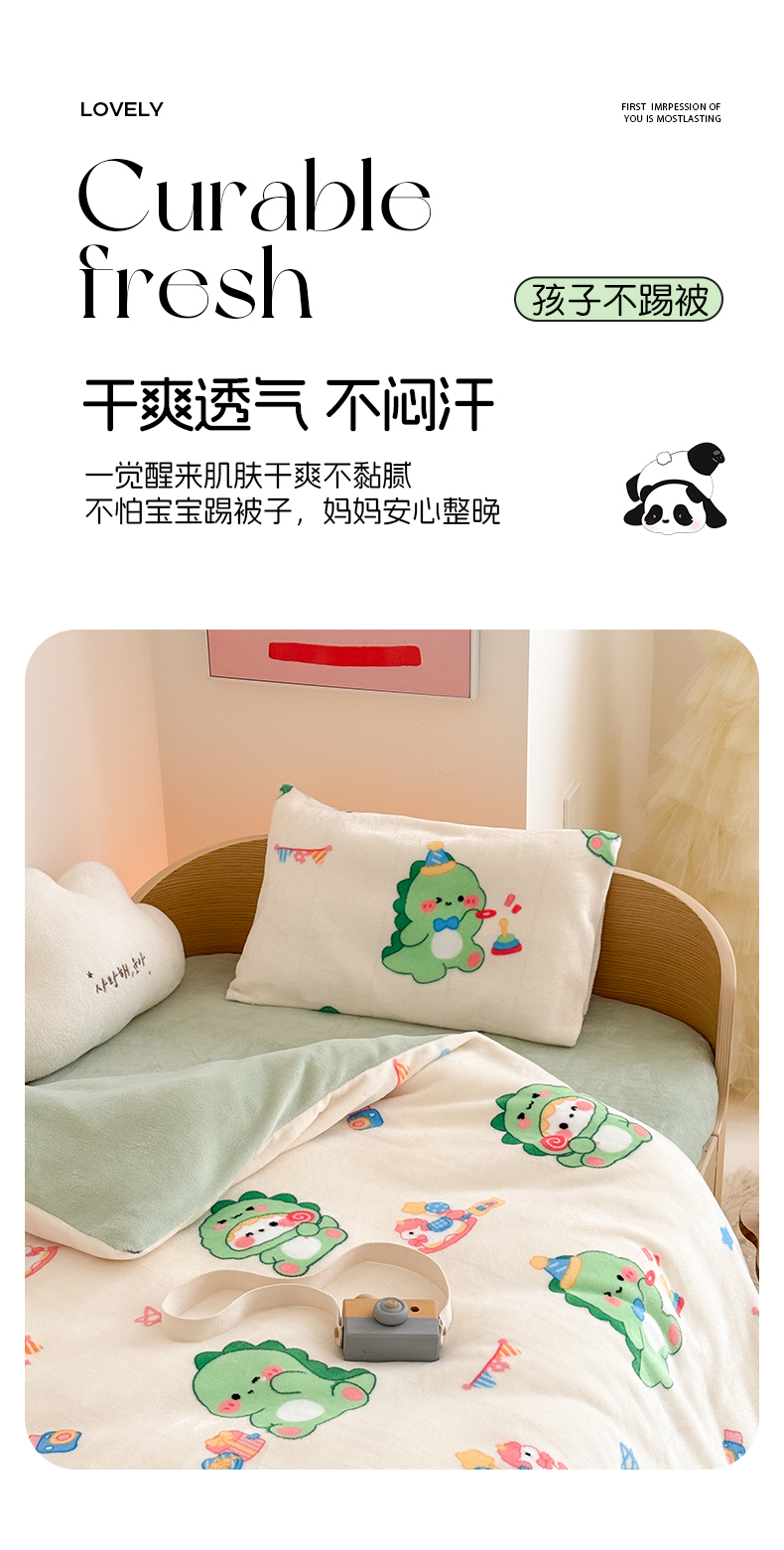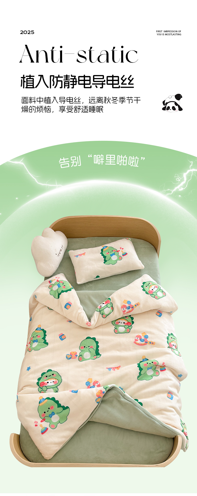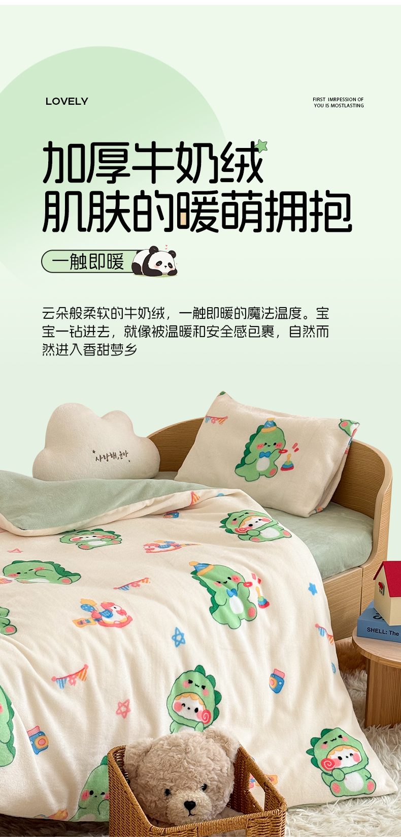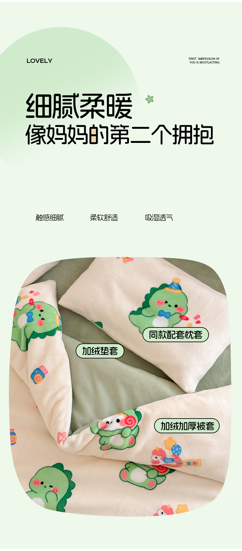 当前位置: 91家纺网 > 商品网购 > 床品套件 > 三件套 > 嗨生活 2025新款加厚牛奶绒三件套儿童套件幼儿园三件套系列 开心恐龙