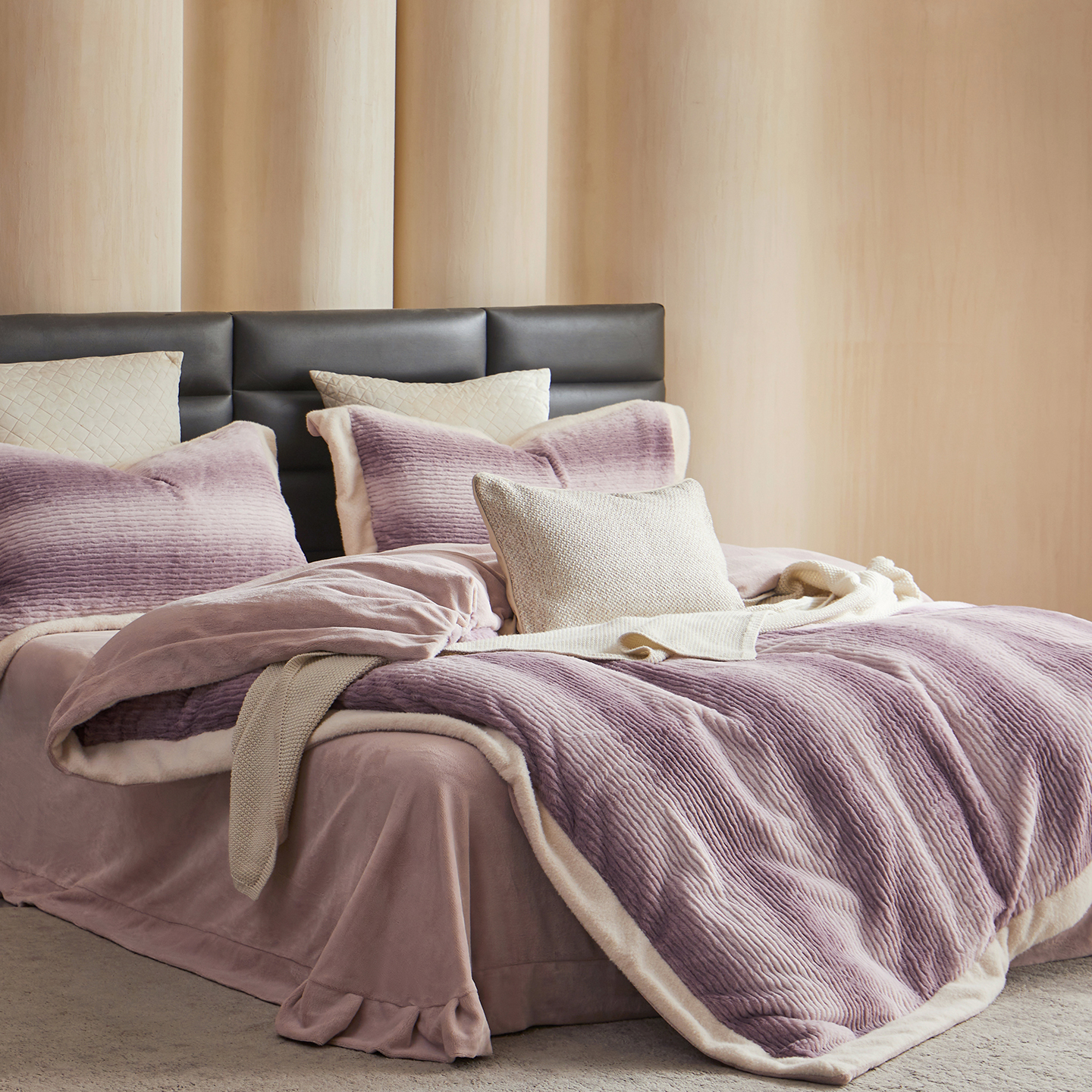 时亿家居 2025新款仿狐绒牛奶绒四件套-柔如系列 霞光紫