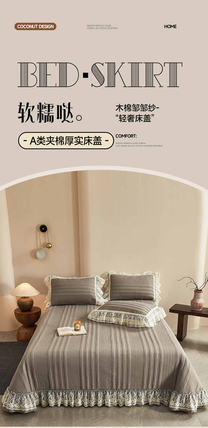 • 91家纺网 家纺一手货源 找家纺 予梦家纺 2025新款床盖 蔷薇-云雾灰