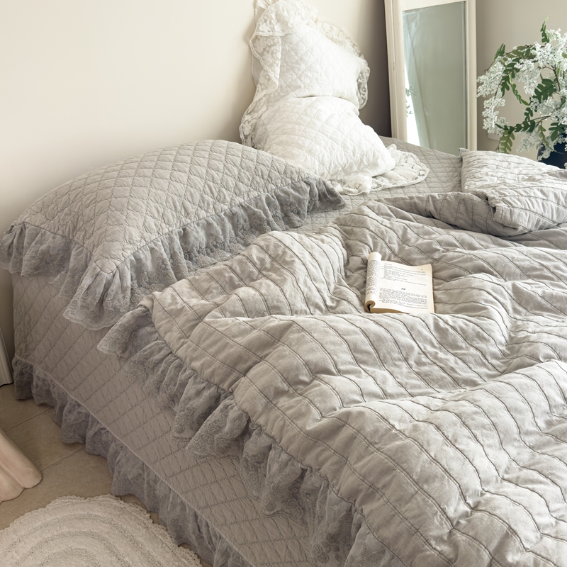 (总)上喜2025新款韩国全棉砂洗床盖系列,粉色,黄色,灰色,绿色,紫色