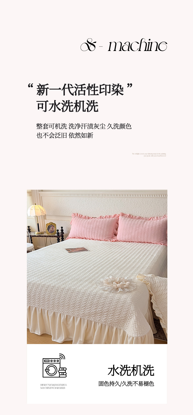 (总)乐嘉盈2025新款全棉水洗棉立体提花贴布绣四件套,淡紫粉,青草绿,晴空蓝,微微紫,象牙黄