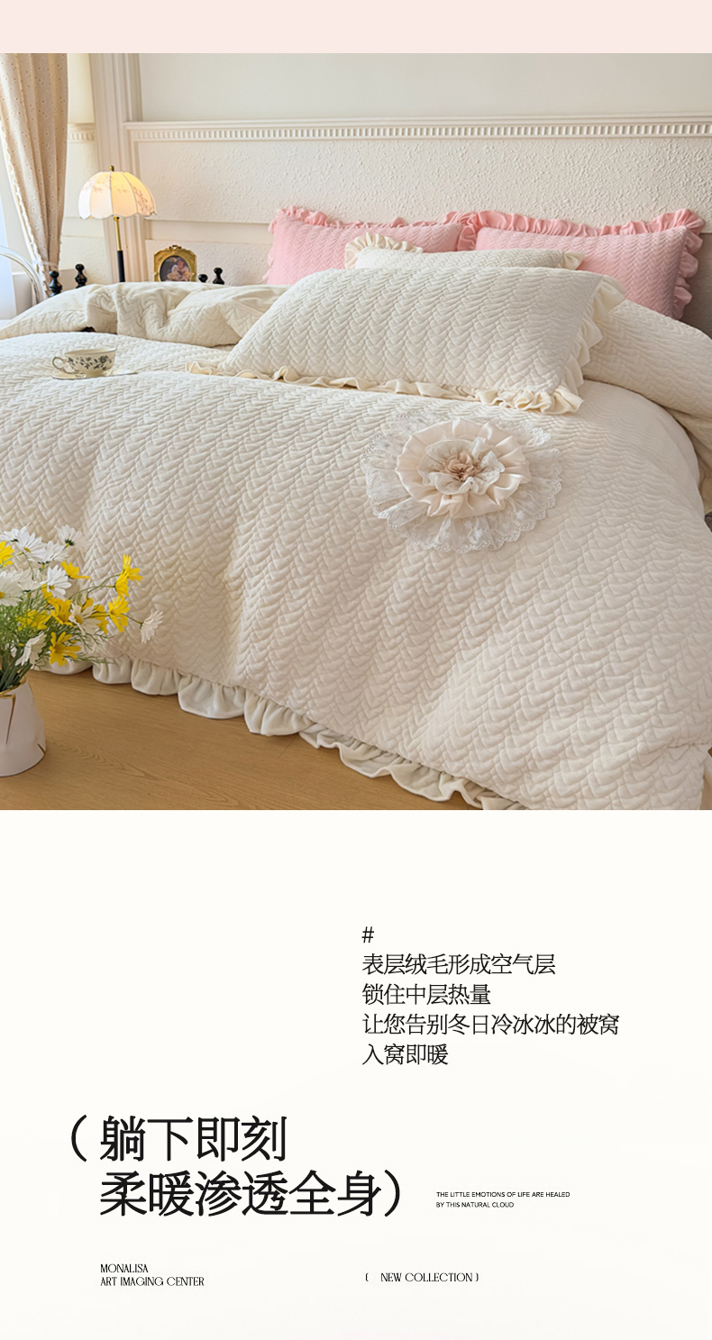 (总)乐嘉盈 2025年新款纯色雕花牛奶绒四件套,粉色
