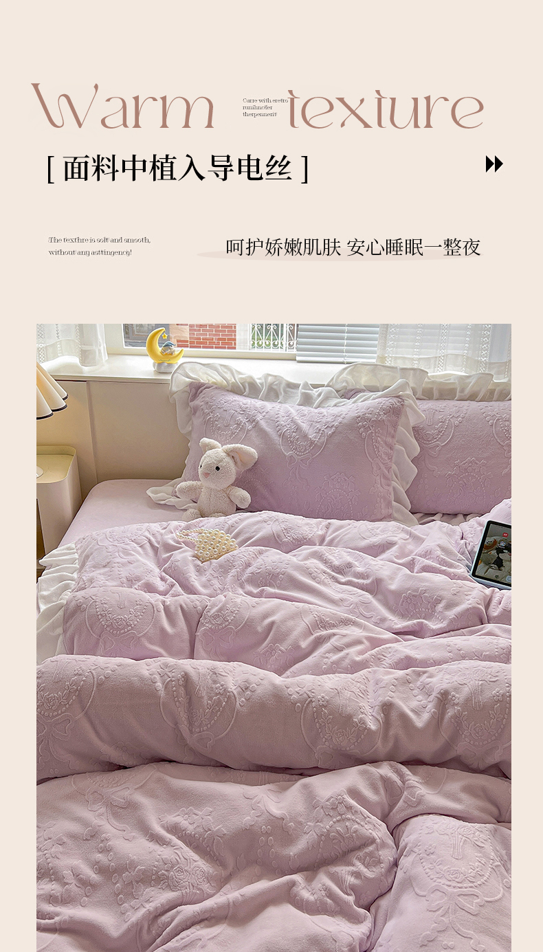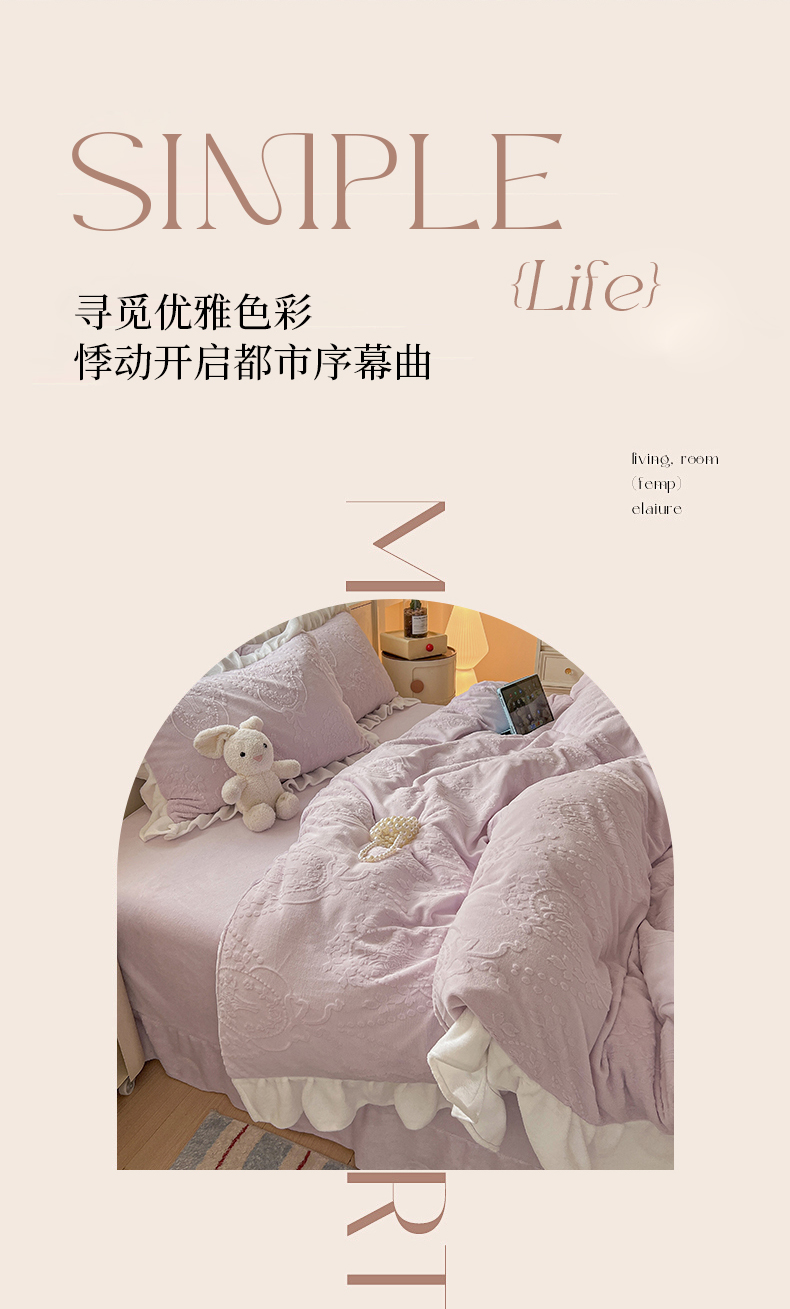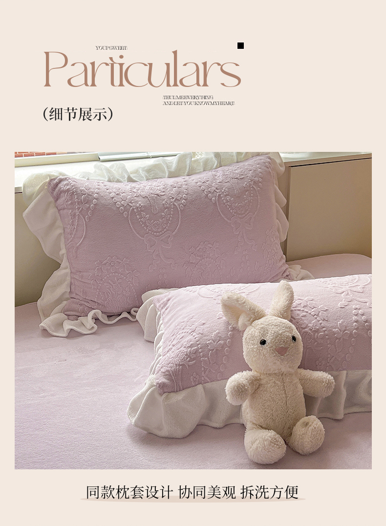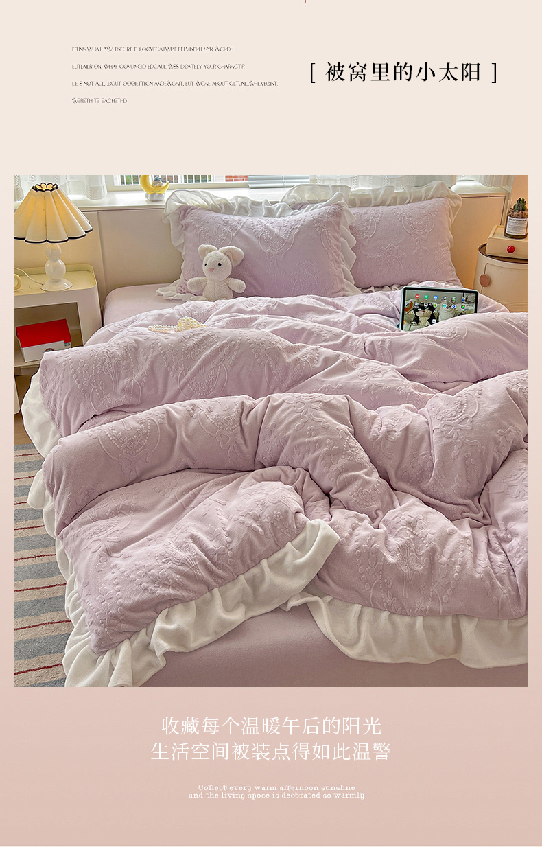 当前位置: 91家纺网 > 商品网购 > 床品套件 > 四件套 > 牛奶绒四件套 > 亿梵家居 2025新款法式花边款A类5D牛奶绒立体雕花四件套(提供买家秀) 花边款 手捧花-新媚紫