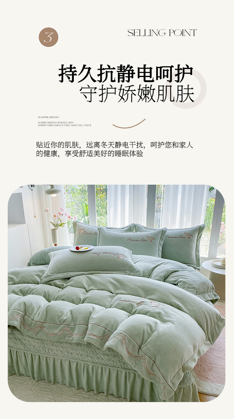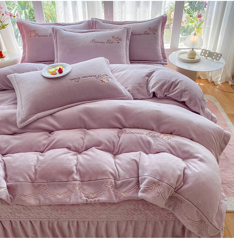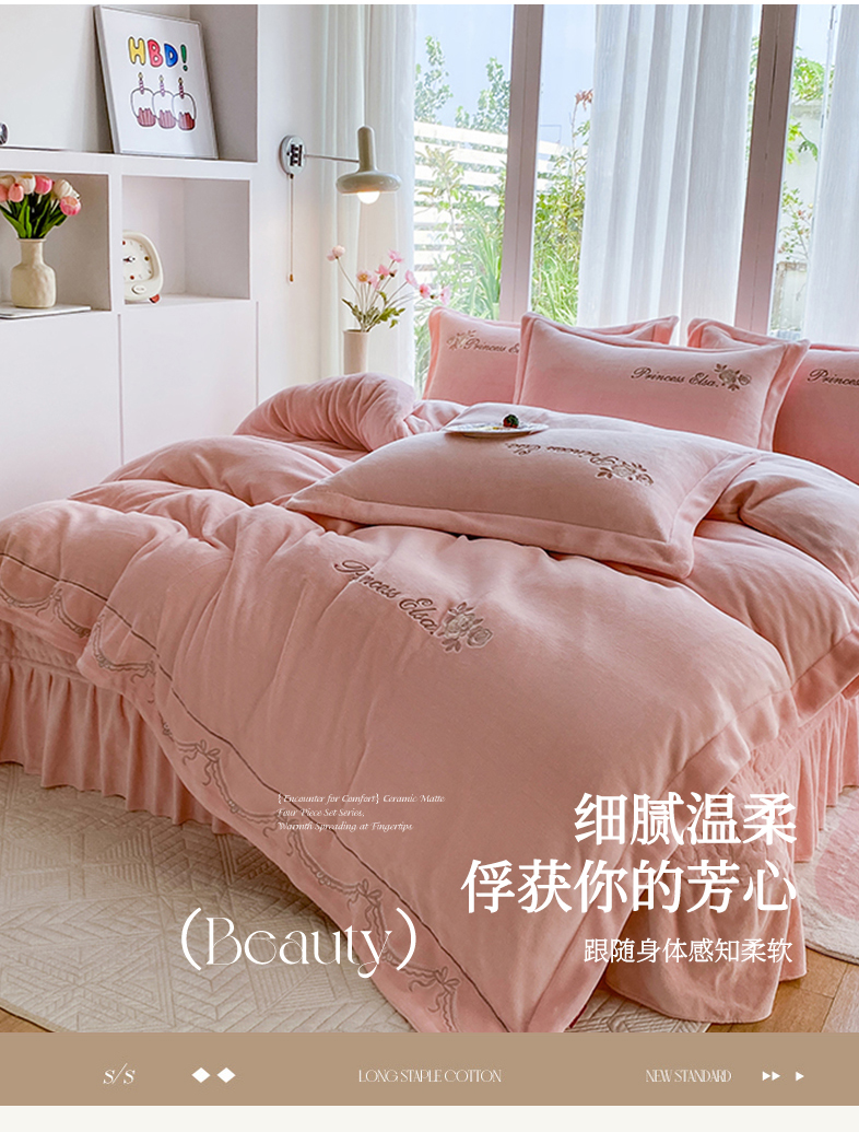 (总)乐嘉盈2025年新款纯色刺绣床裙款牛奶绒四件套-云栖,云栖-豆沙,云栖-粉,云栖-蓝,云栖-绿,云栖-米白,云栖-紫