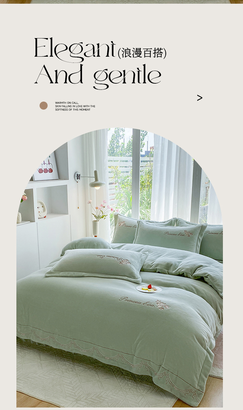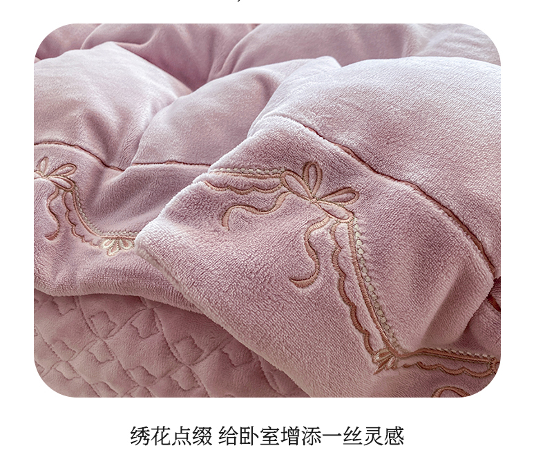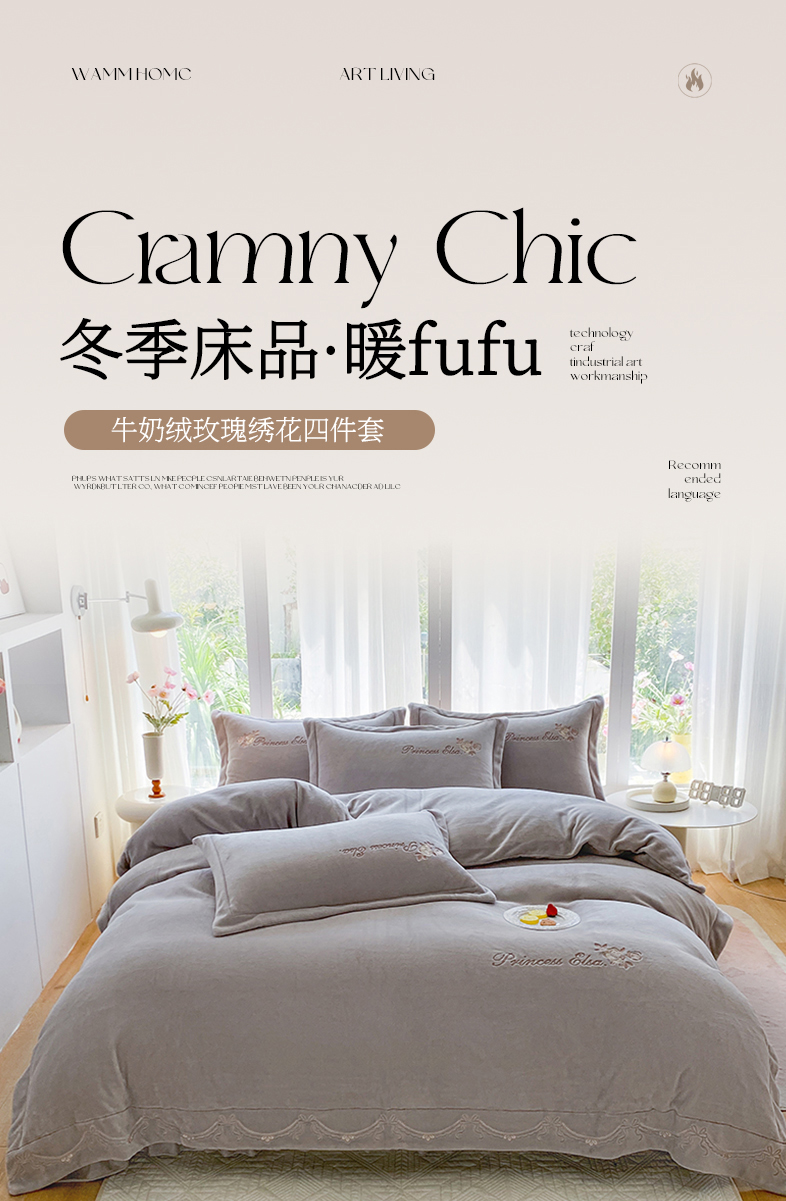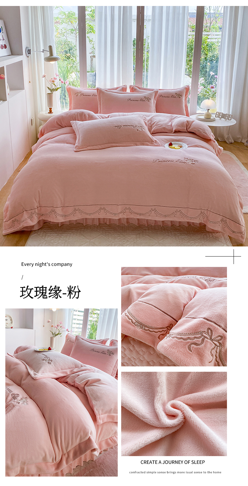 商品名称:(总)乐嘉盈 2025年新款纯色刺绣牛奶绒四件套-玫瑰缘