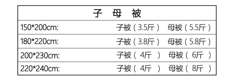 1.8子母被(3.8+5.8斤) | ¥149.00 |