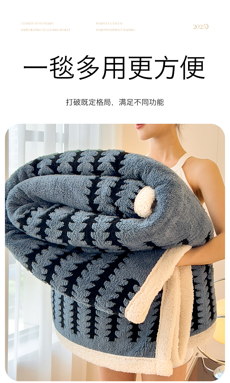 亚龙工厂店 2025新款云杉绒加厚保暖多功能毛毯毯子 杉影毯 蓝