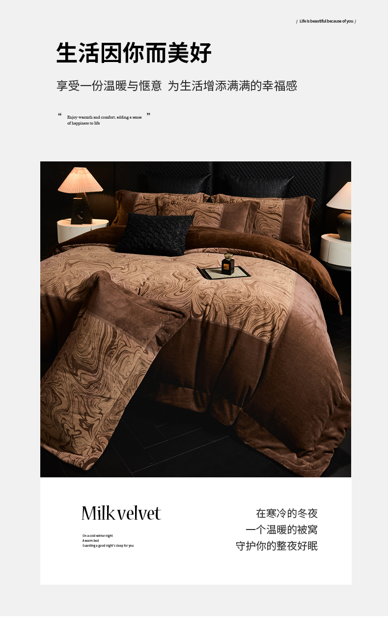 商品名称:(总)控价 2025新款 床盖款240克全消光数码印花牛奶绒四件套-云杉