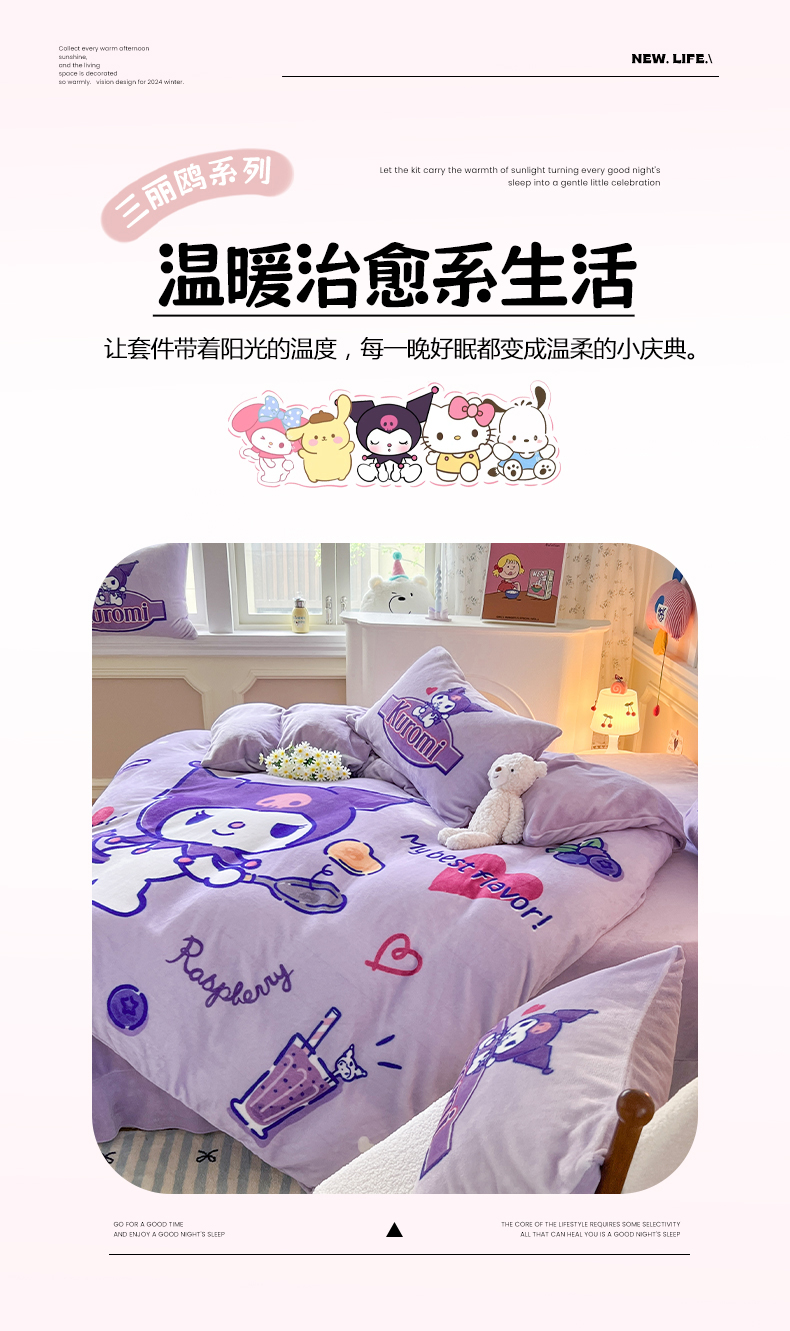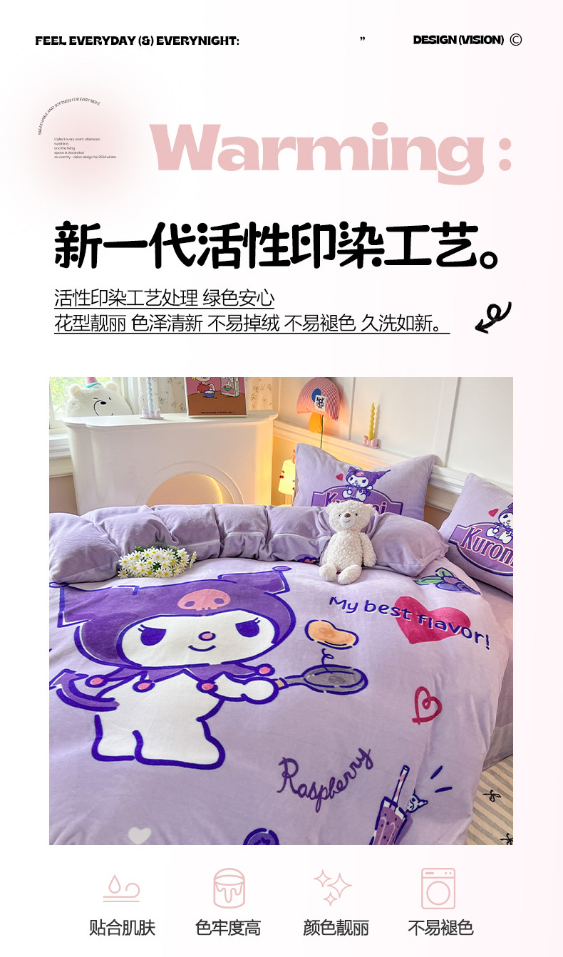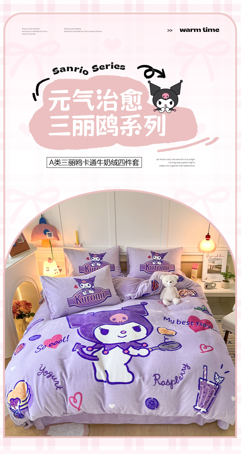 当前位置: 91家纺网 > 商品网购 > 床品套件 > 四件套 > 牛奶绒四件套 > 妖妖家纺 2025新款高克重牛奶绒三丽鸥大版四件套 库洛米大厨