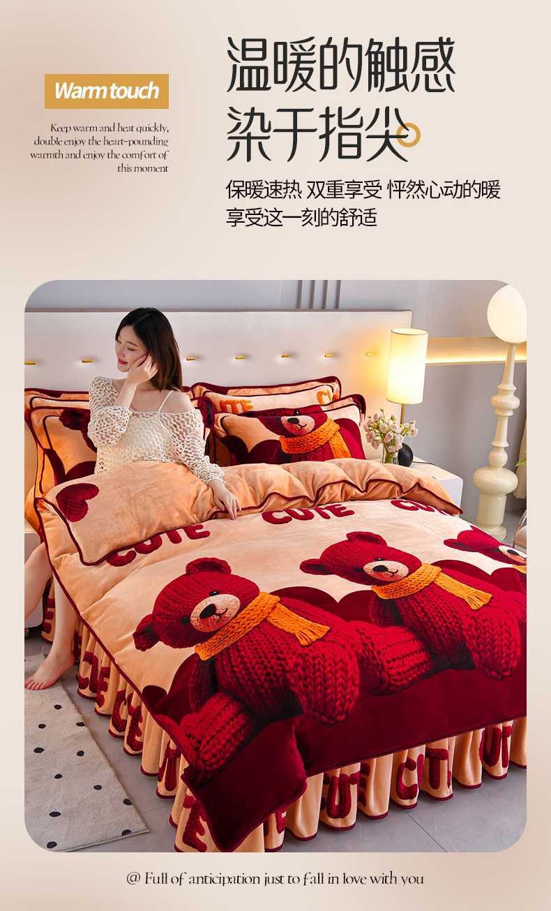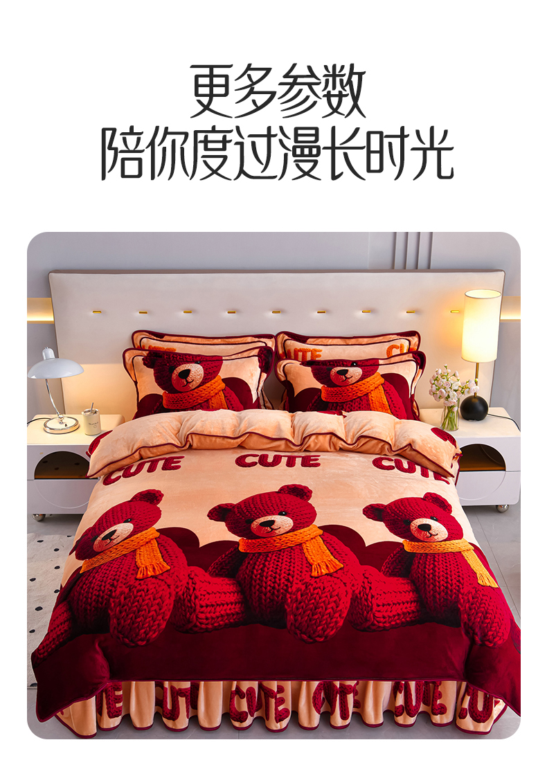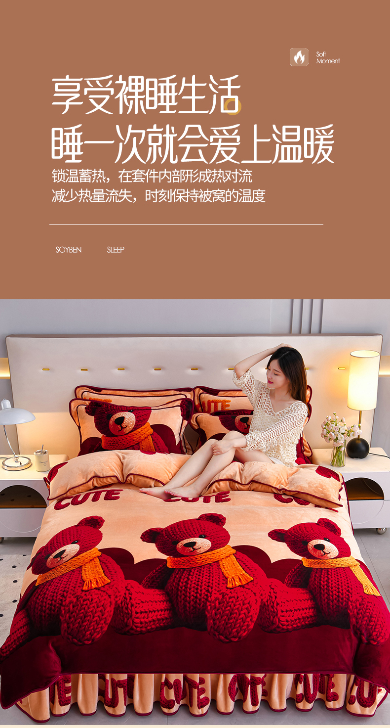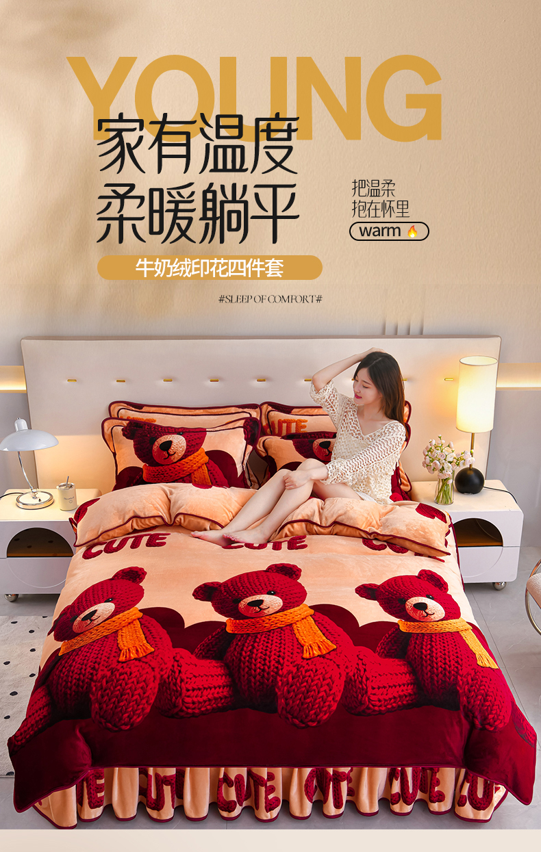 缘莉娜家纺 2025高克重8斤牛奶绒四件套金貂绒法莱绒加厚保暖直播电商爆款 萌萌熊
