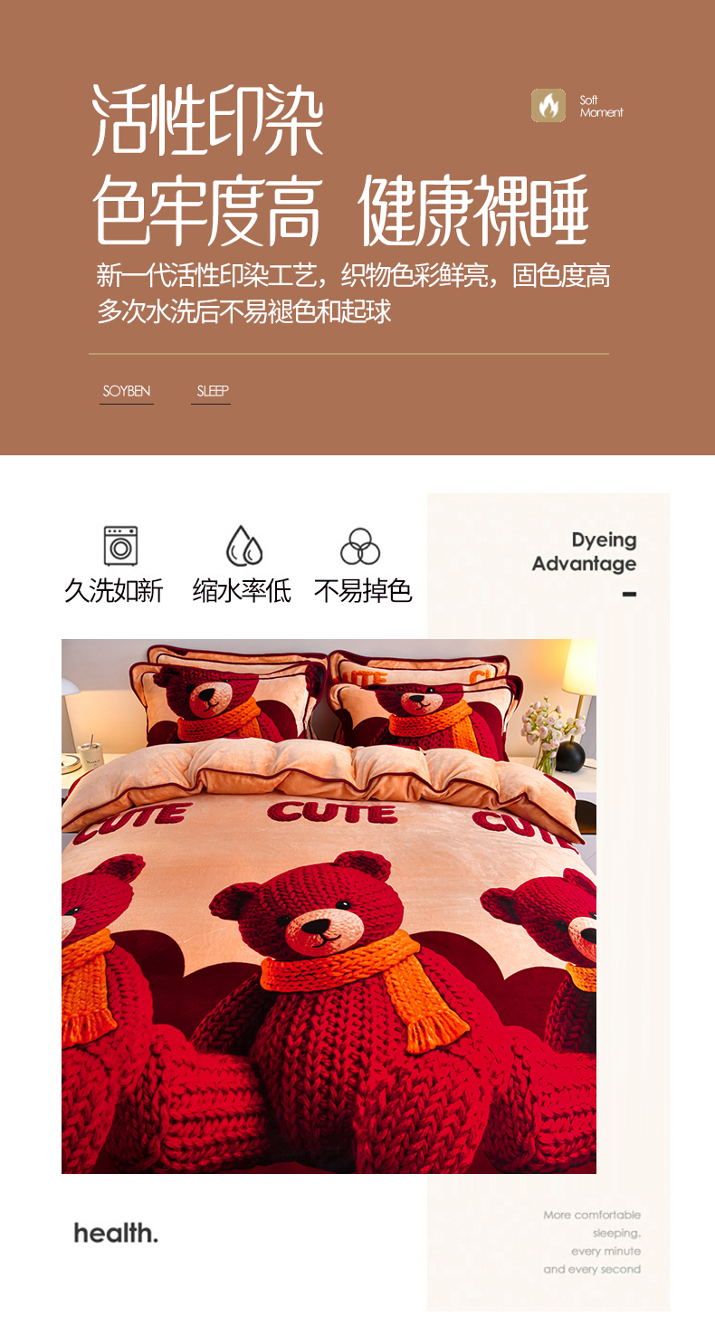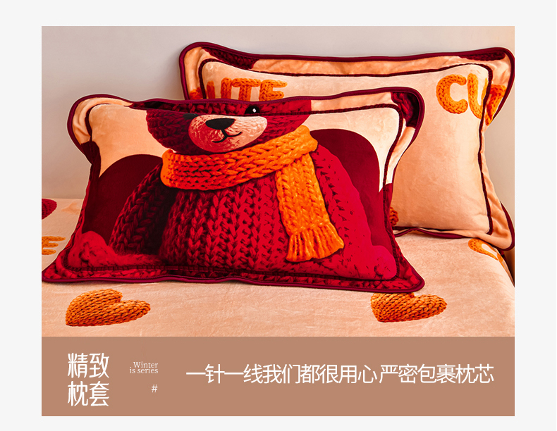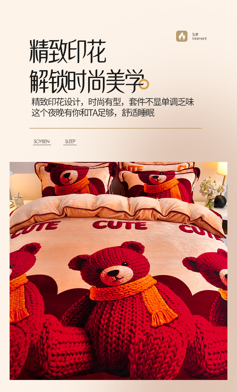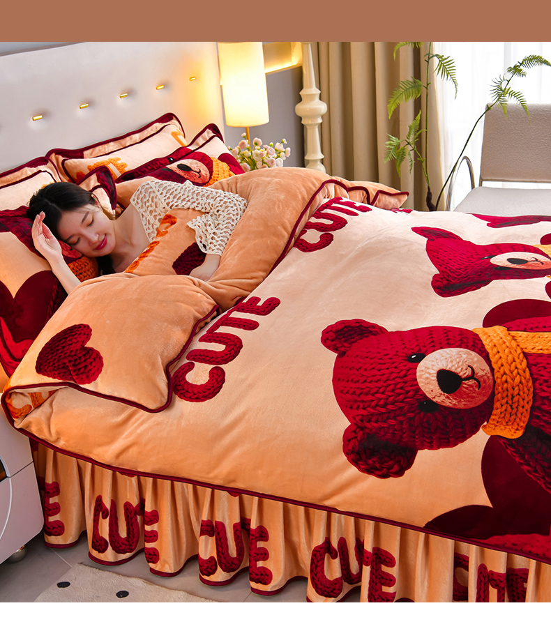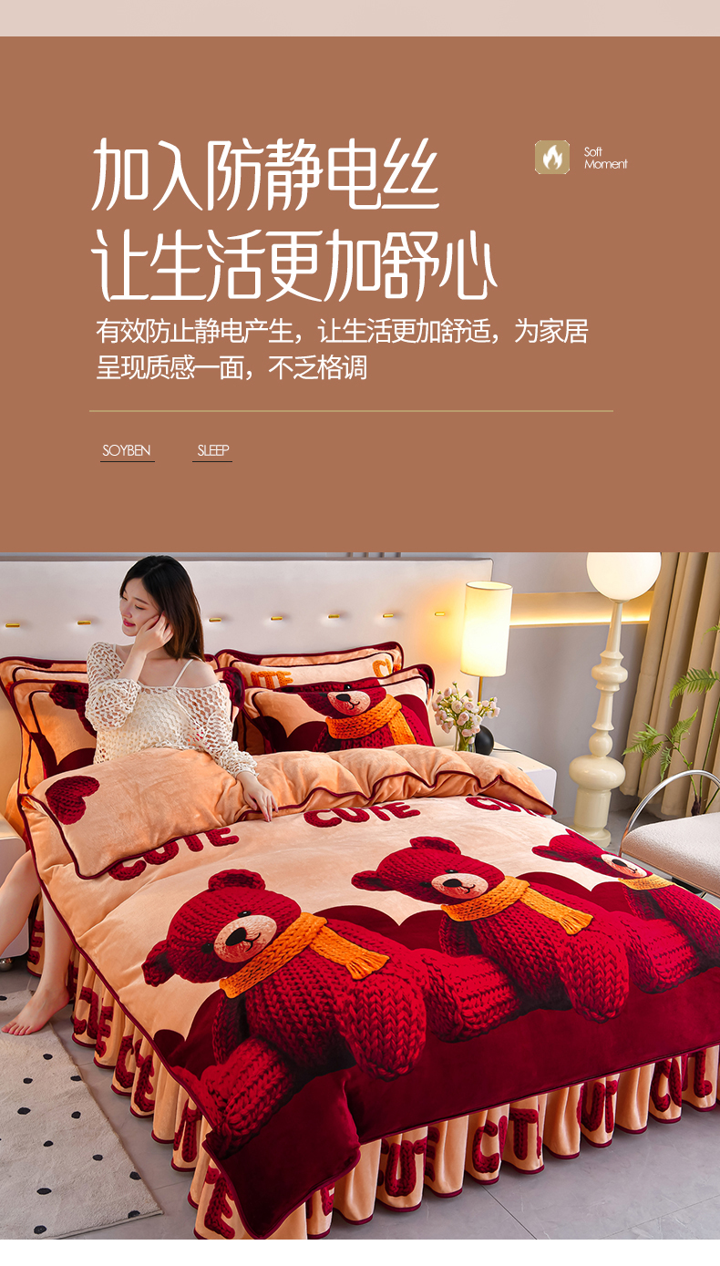缘莉娜家纺 2025高克重8斤牛奶绒四件套金貂绒法莱绒加厚保暖直播电商爆款 萌萌熊