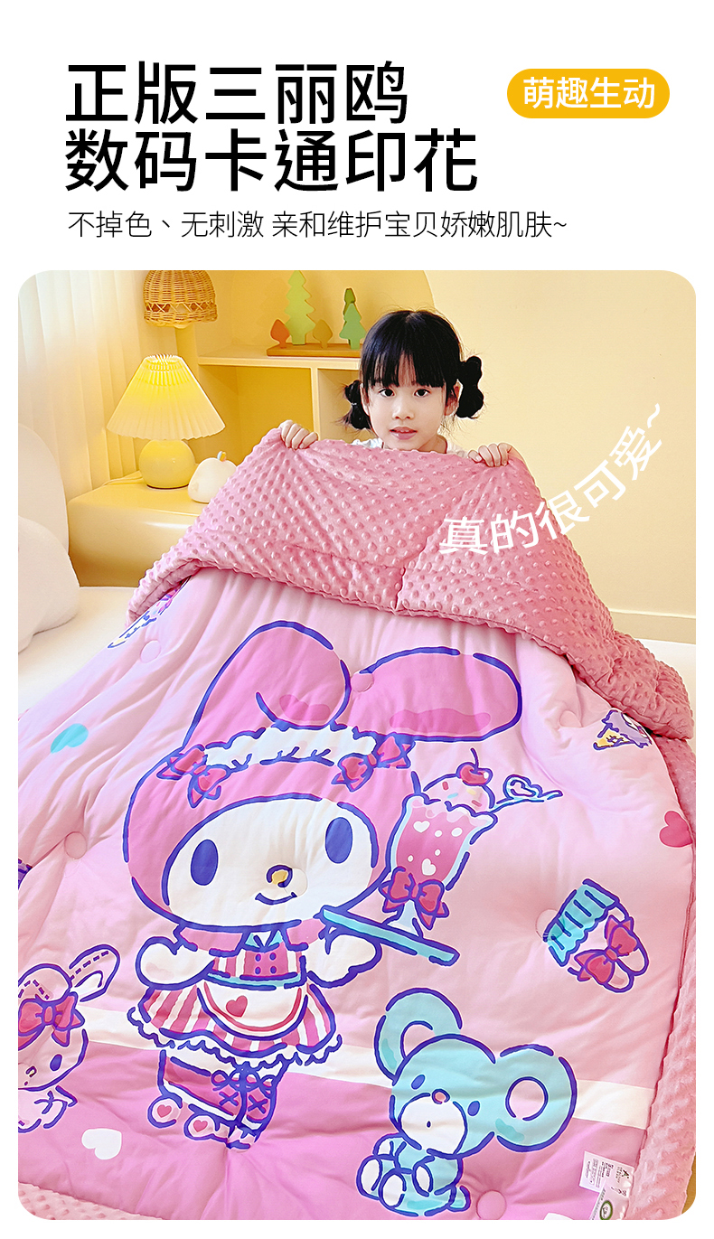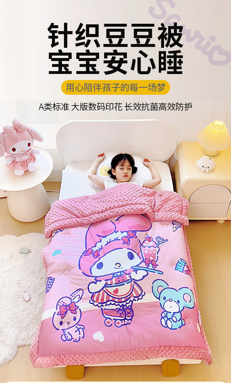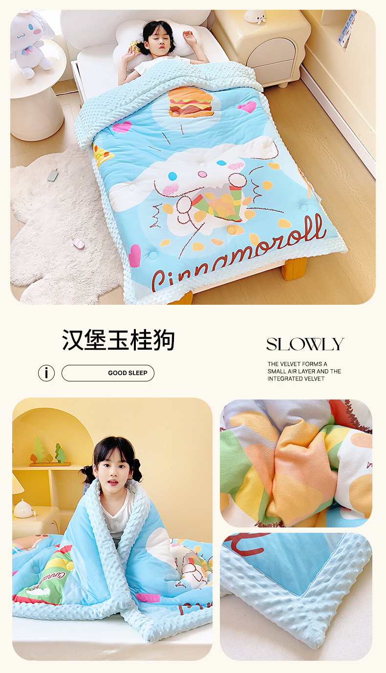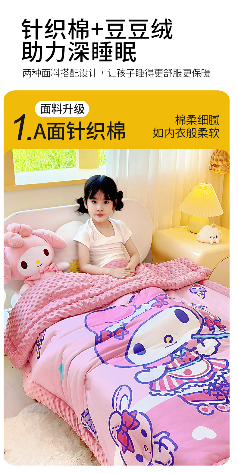 (总)吉咪兔家纺 2025新款大版三丽鸥库洛米儿童豆豆被针织棉幼儿园宝宝午睡春秋四季婴儿被子被芯,草莓美乐蒂,蛋糕库洛米,汉堡玉桂狗,花花美乐蒂,奶茶美乐蒂,气球库洛米,梳妆库洛米,云朵玉桂狗