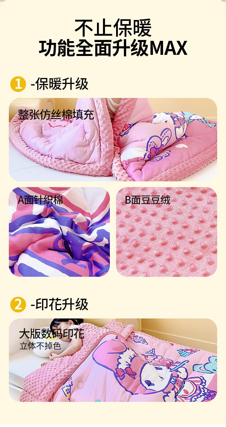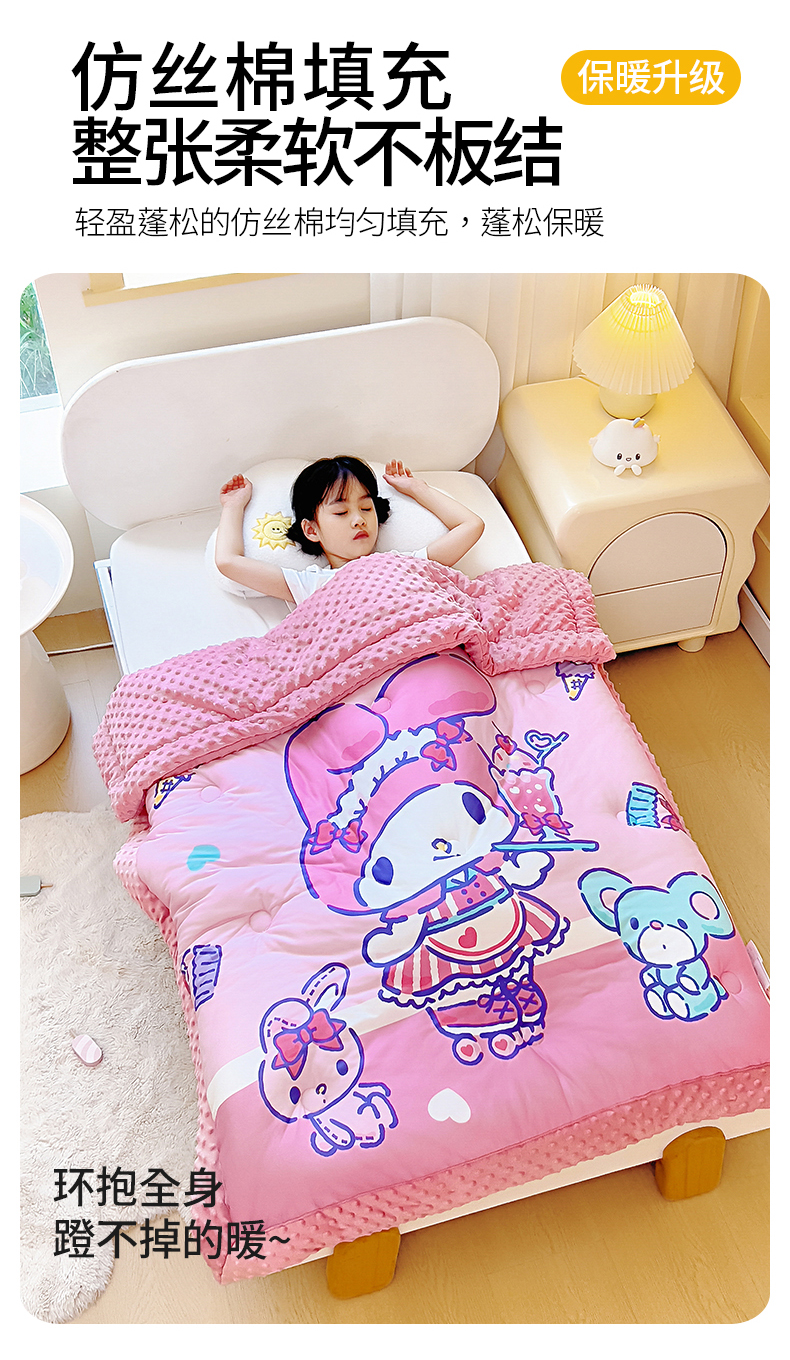 被子 > 冬被 > 吉咪兔家纺 2025新款大版三丽鸥库洛米儿童豆豆被针织棉幼儿园宝宝午睡春秋四季婴儿被子被芯 奶茶美乐蒂