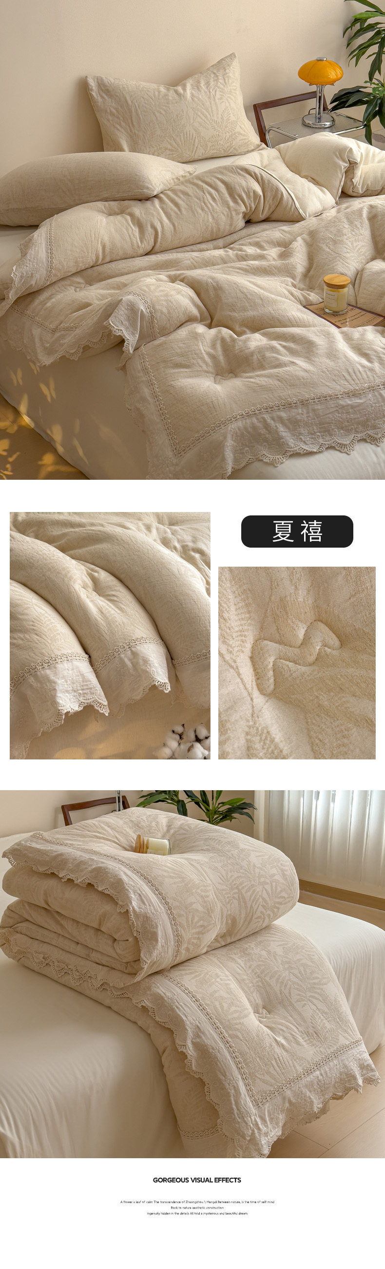 (总)米菲 2025新款全棉双层纱花边被被子被芯,初春,简约格调,南枝