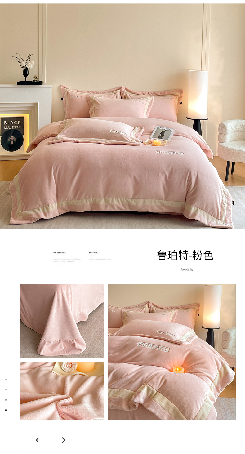 商品名称:雅萱家纺 2025新款300g全消光牛奶绒四件套 鲁珀特-粉色