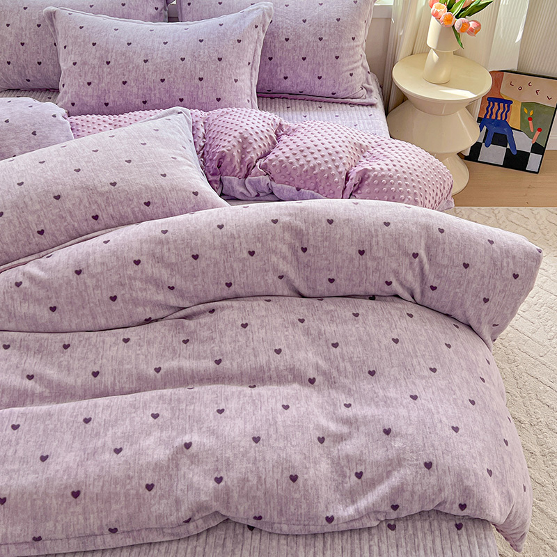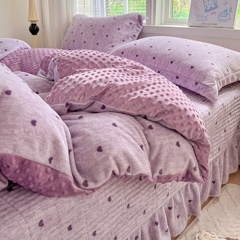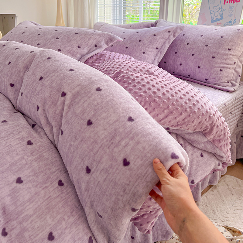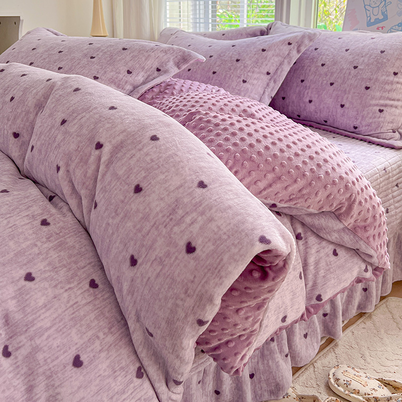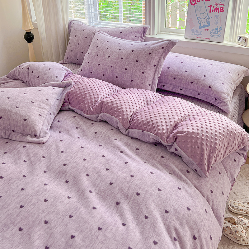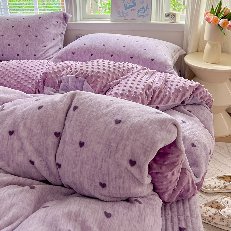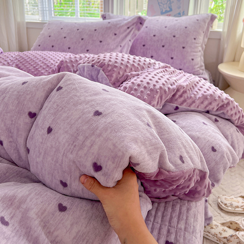 当前位置: 91家纺网 > 商品网购 > 床品套件 > 四件套 > 牛奶绒四件套 > 一比一 2025新款加厚保暖豆豆牛奶绒床盖款四件套紫色小心心