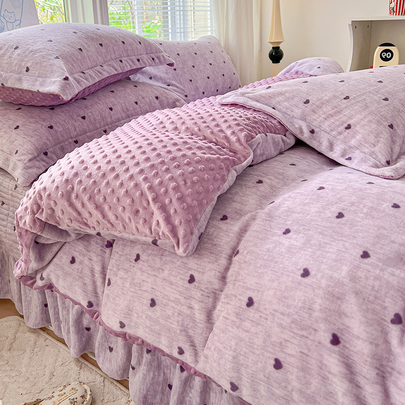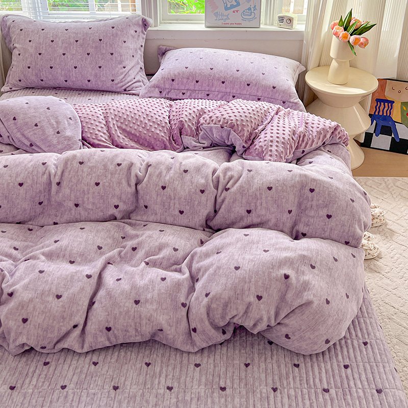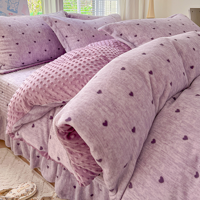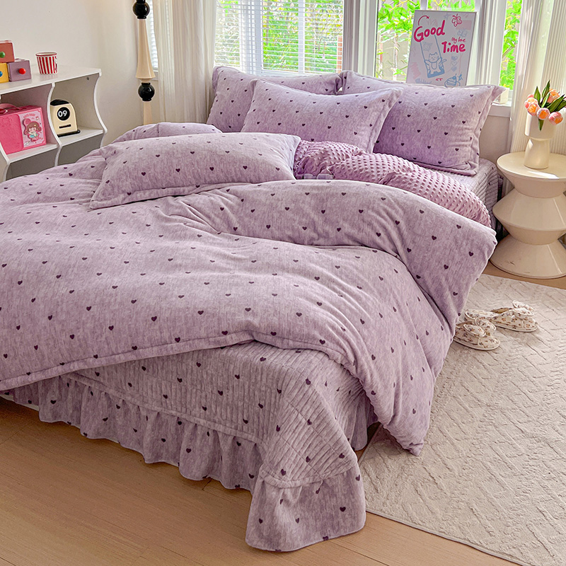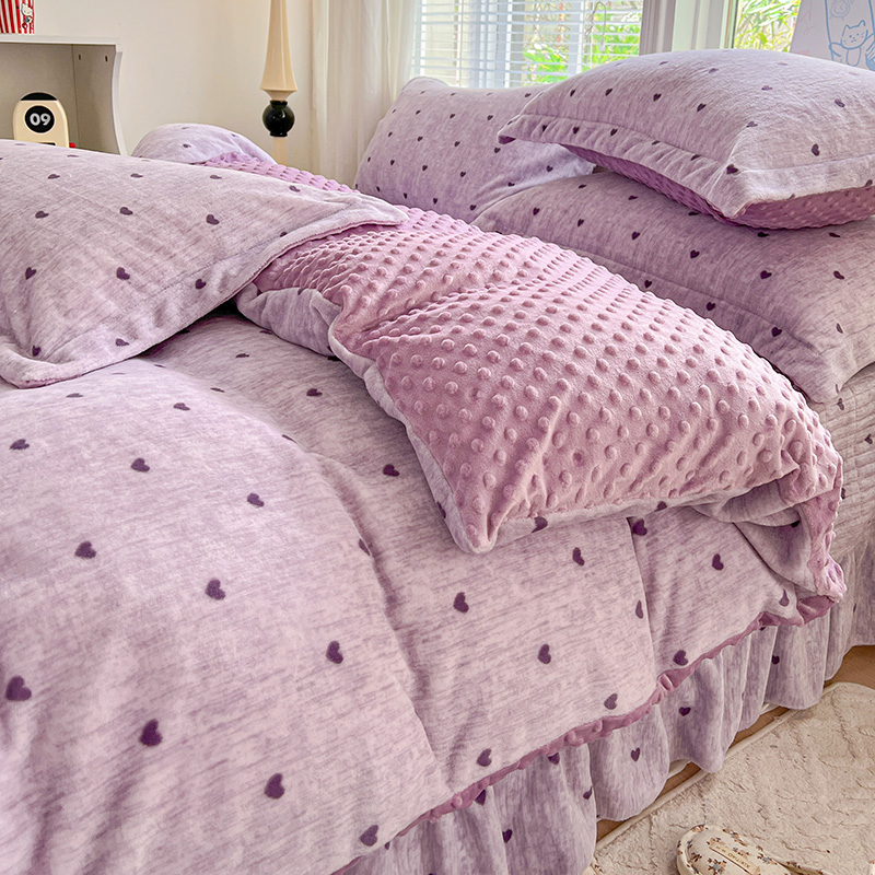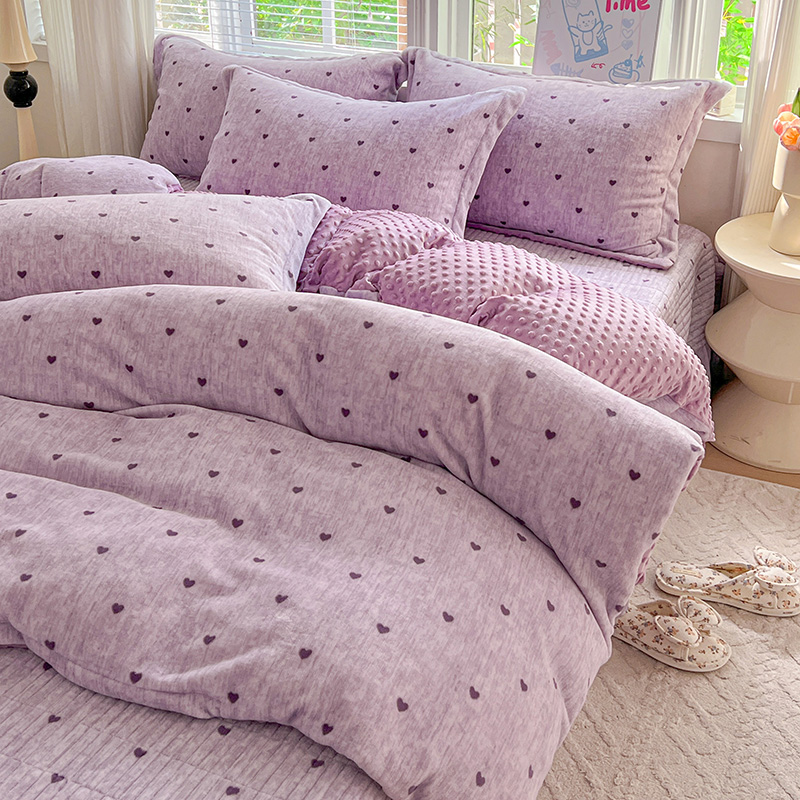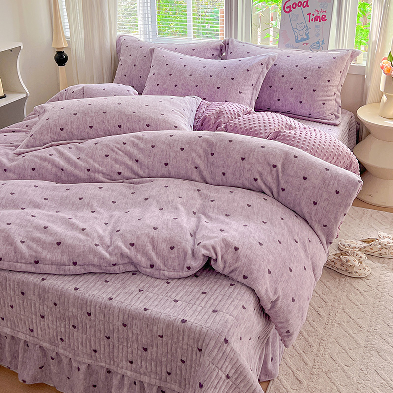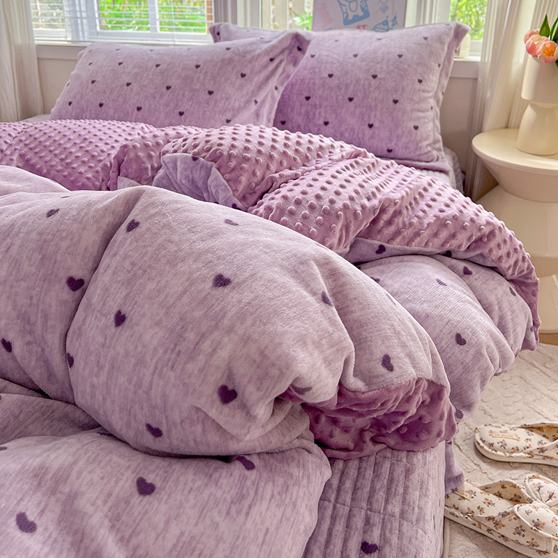 当前位置: 91家纺网 > 商品网购 > 床品套件 > 四件套 > 牛奶绒四件套 > 一比一 2025新款加厚保暖豆豆牛奶绒床盖款四件套紫色小心心