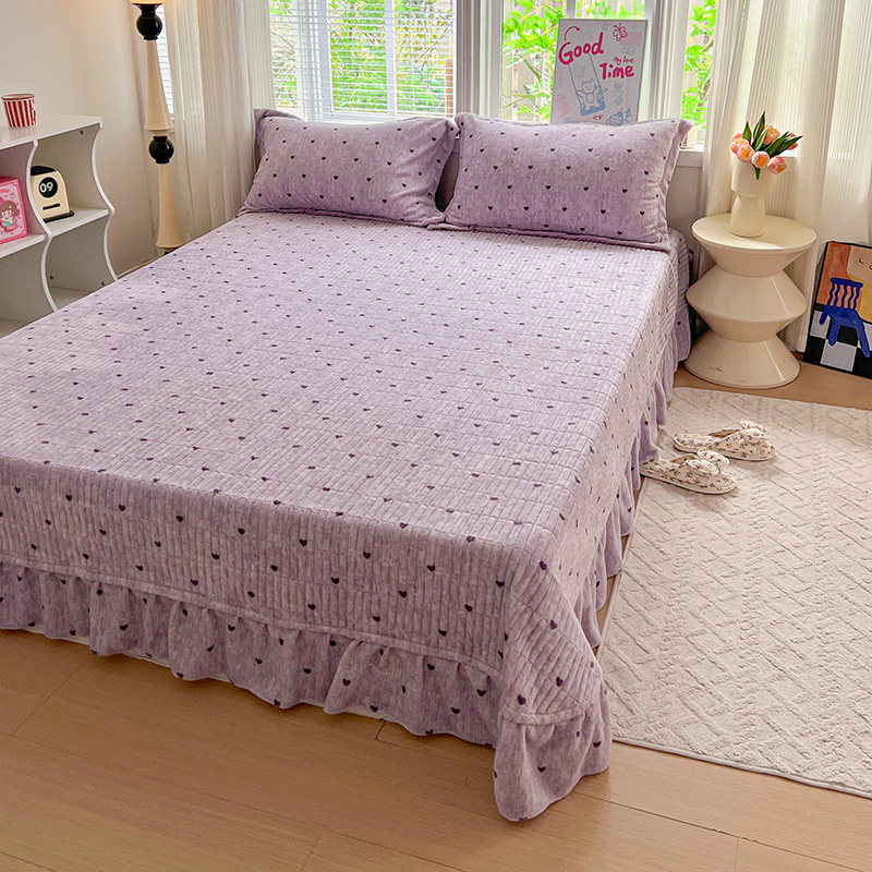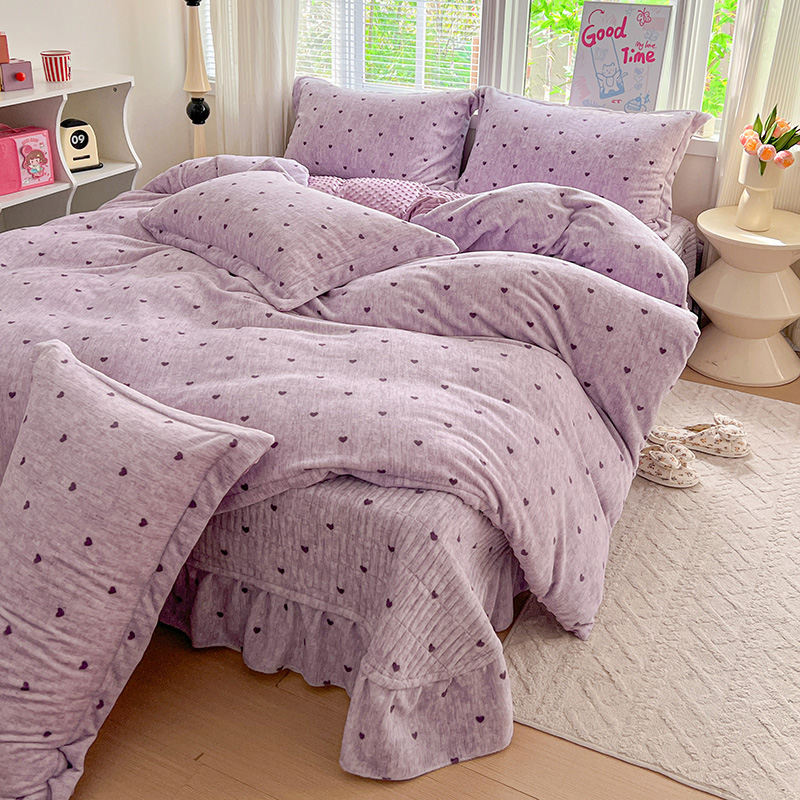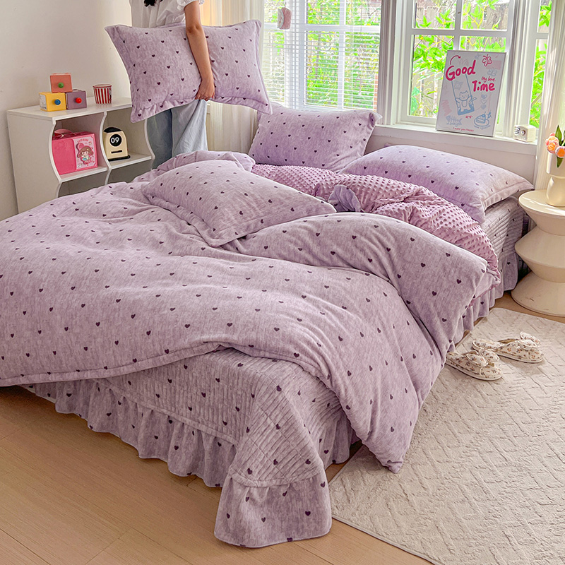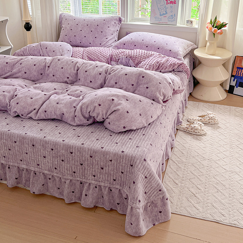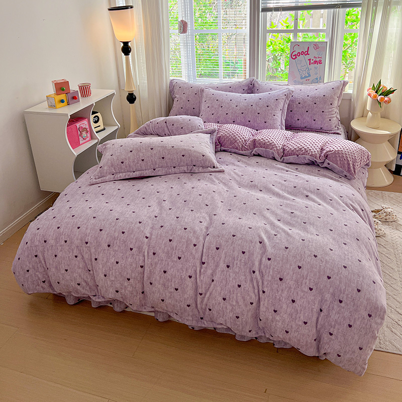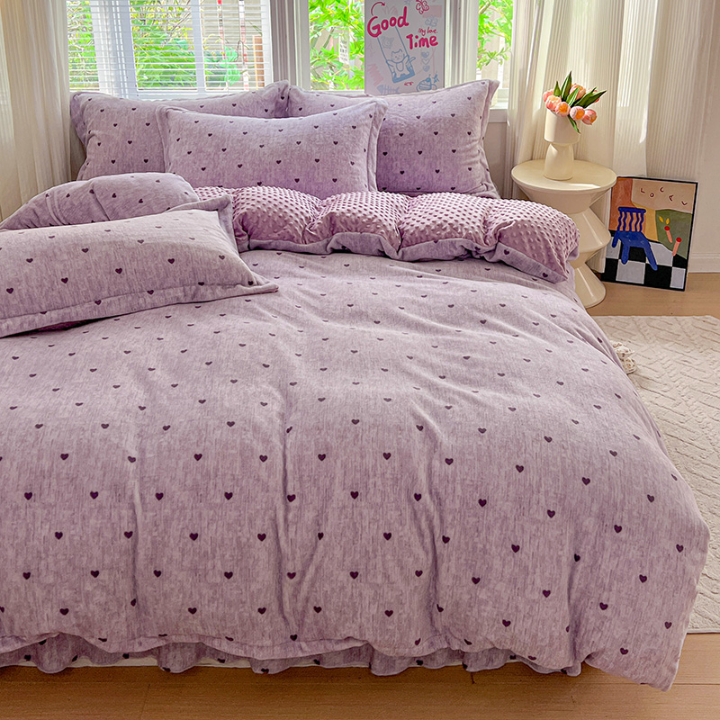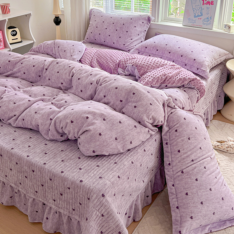 当前位置: 91家纺网 > 商品网购 > 床品套件 > 四件套 > 牛奶绒四件套 > 一比一 2025新款加厚保暖豆豆牛奶绒床盖款四件套紫色小心心